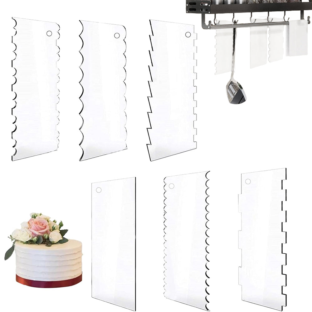 6Pcs Clear Acrylic Cake Scraper Set Stripes Edge Cutter for Mousse Pastry Cutter Kitchen Baking Tool