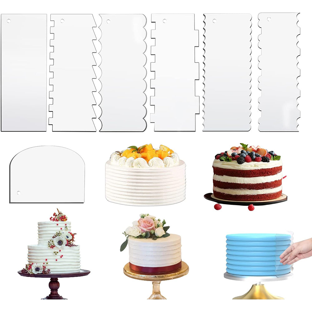 7Pcs Clear Acrylic Cake Scraper Set Stripes Edge Cutter for Mousse Pastry Cutter Kitchen Baking Tool
