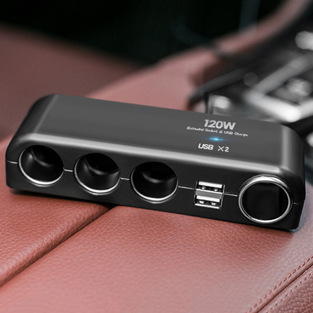 - 6-in-1 Functional Design: Features 1 cigarette lighter socket, 3 extension sockets, and 2 USB ports to power multiple devices at once.