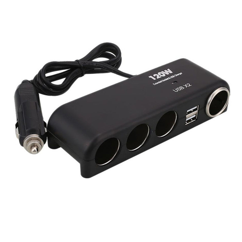 6-in-1 120W Multi Socket Car Cigarette Lighter Splitter 12V-24V Dual USB Charger