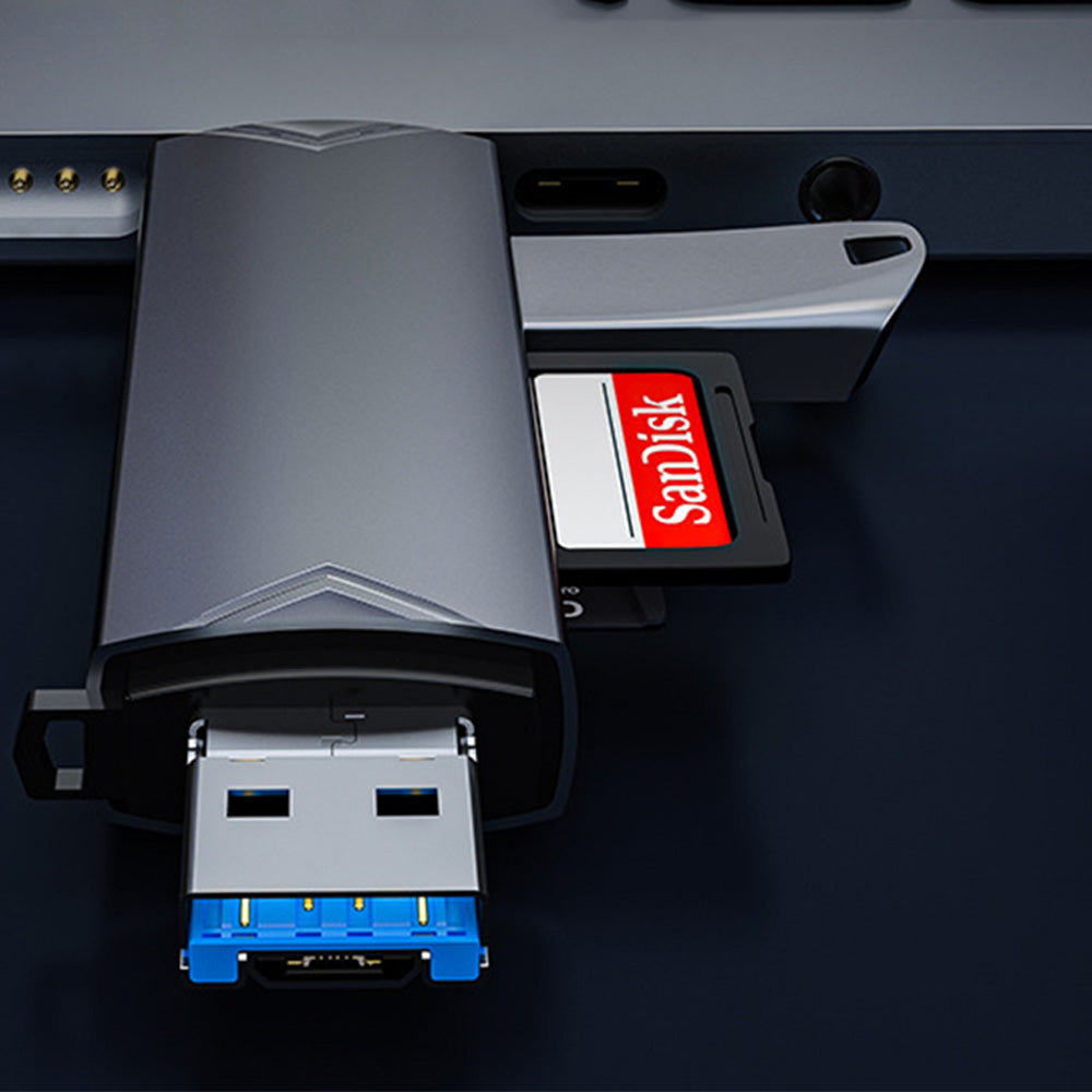 6-in-1 SD TF Card Reader Multifunctional USB 3.0 Micro USB Flash Drive Adapter Grey