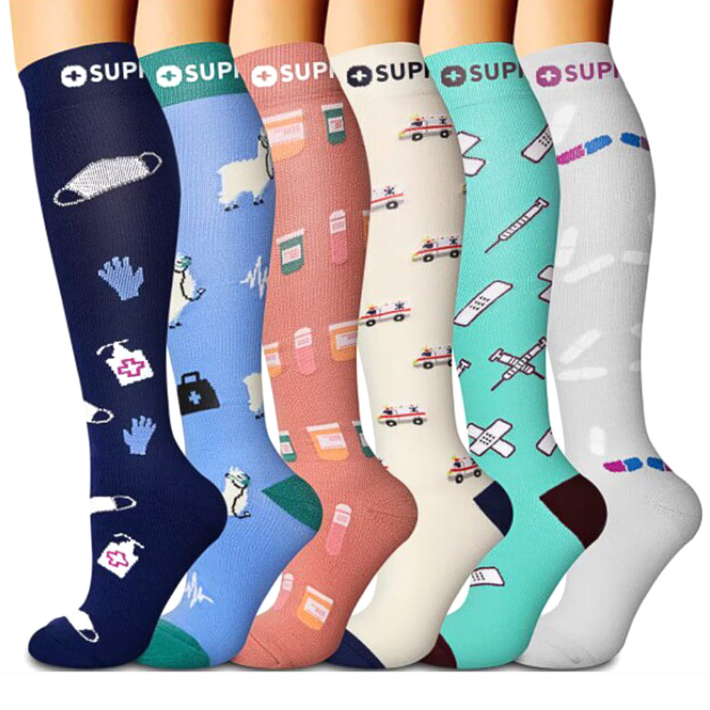 6 Pairs Women's High Stretch Long Socks for Sports & Casual Wear-Muticolor