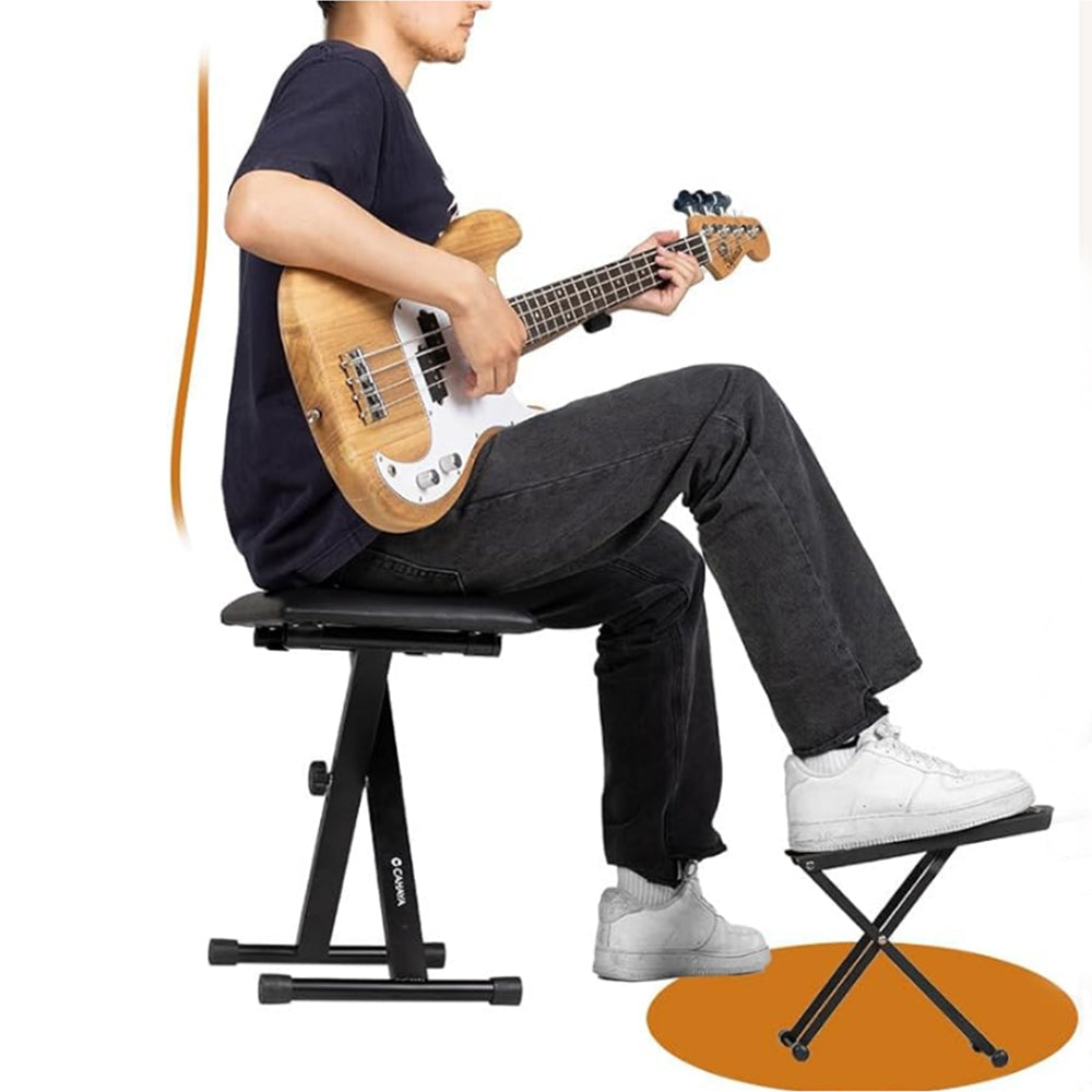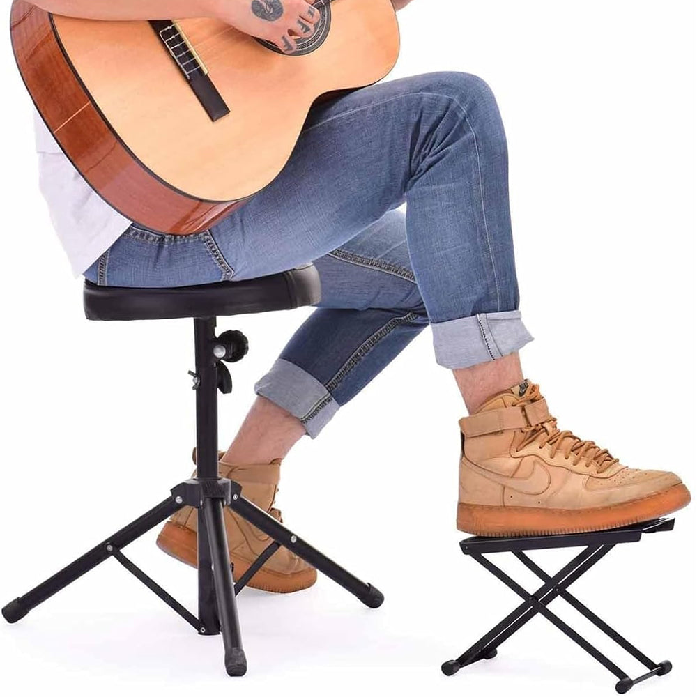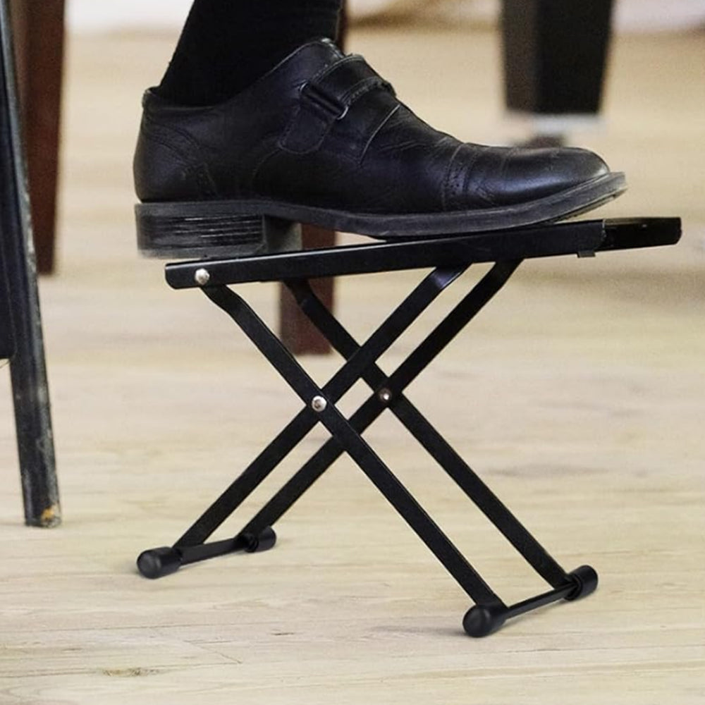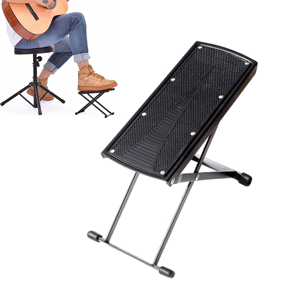 - Experience superior stability, adjustable convenience, and portable versatility with this guitar footrest.