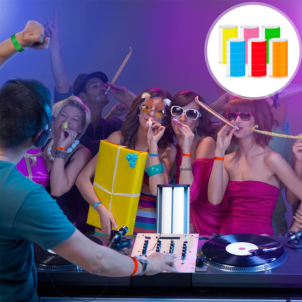 600Pcs Adhesive Paper Wristbands Neon Colored Water-Resistant Hand Bands for Events Party Concert