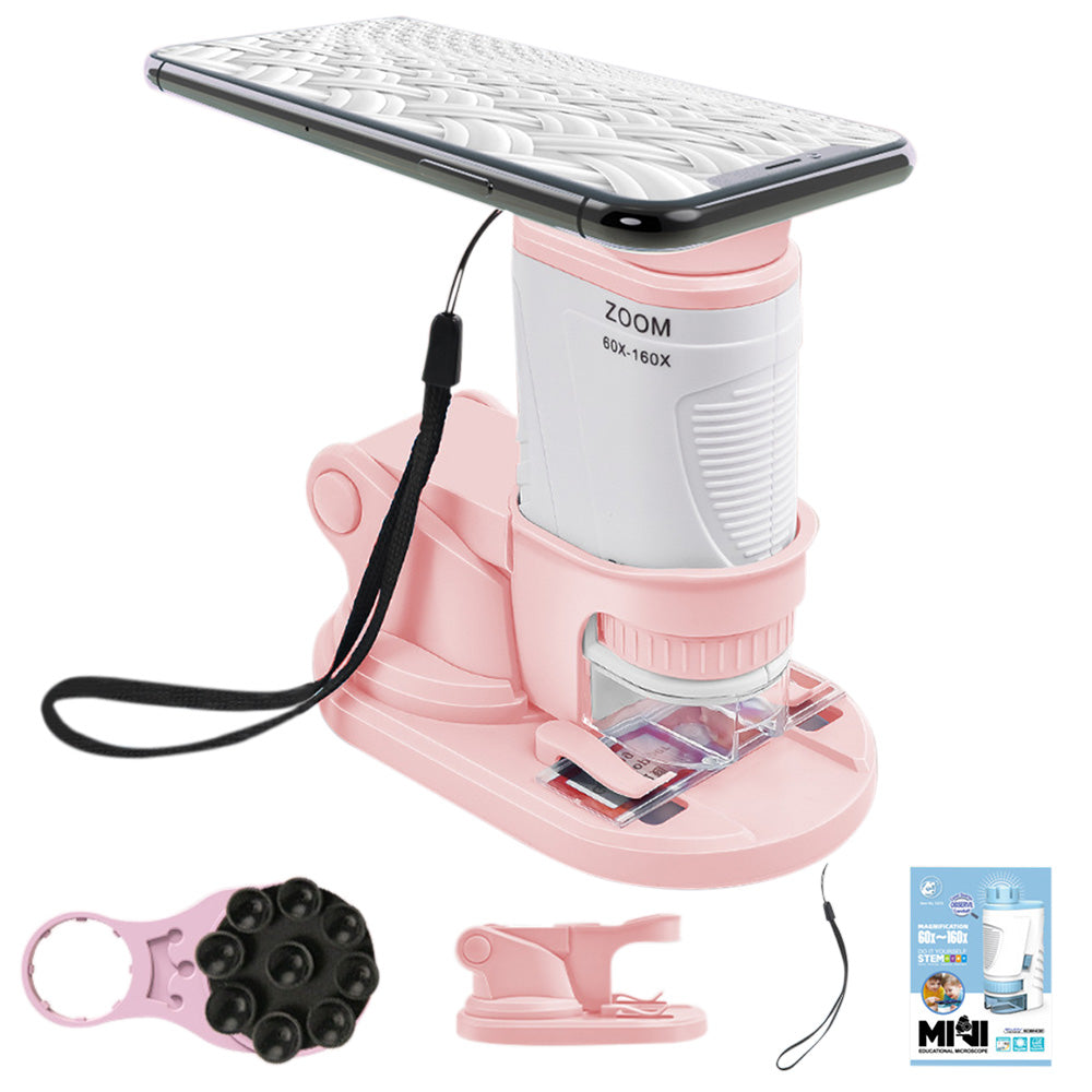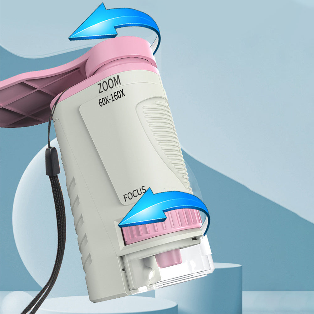 60X-180X Magnification Pocket Microscope Explorer Toy Set for Kids Pink