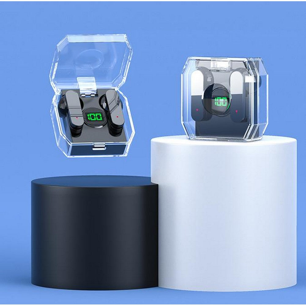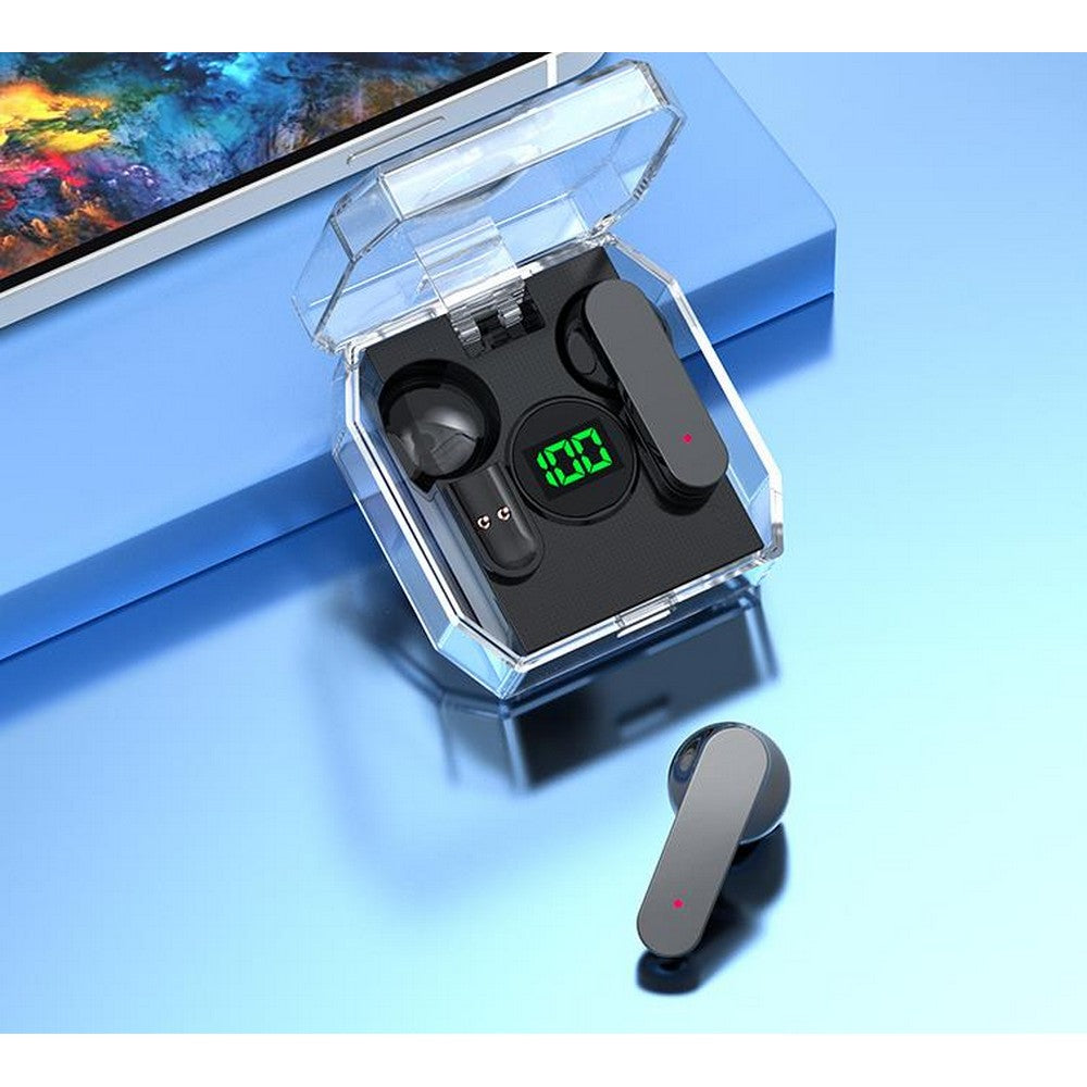 TWS Wireless Headphones Transparent LED Display Earbuds Wireless Bluetooth Headset Fone Earphones-Black