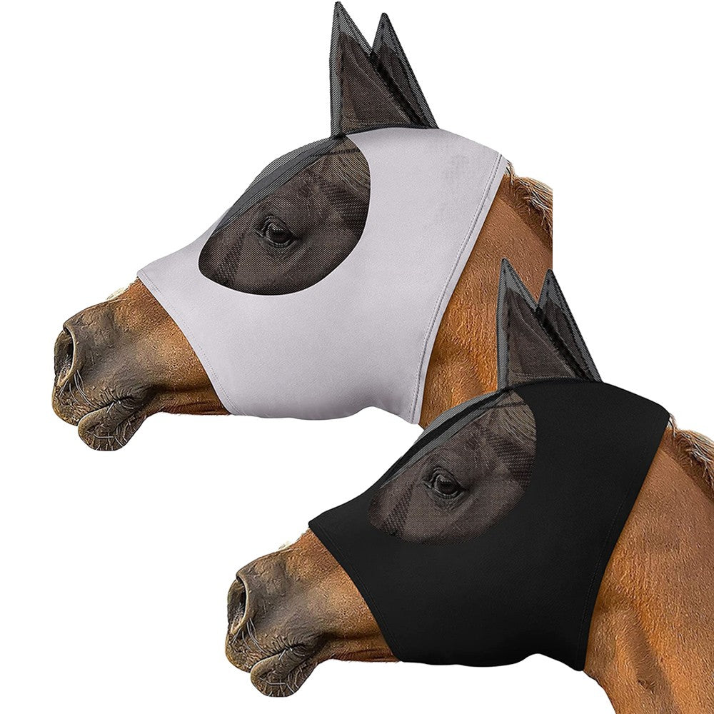 2Pcs Horse Fly Mask with Ears Cover - Black + Grey