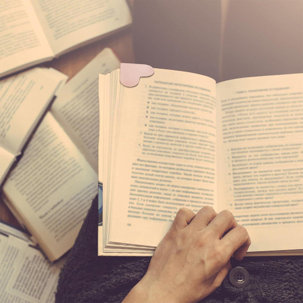 6PCS PU Leather Heart Bookmarks Cute Corner Page Holders for Books