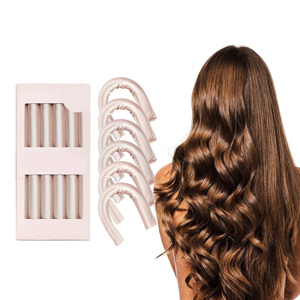 6Pcs Set Heatless Hair Curlers Flexible Hair Curling Rods Overnight Curls Hair Styling Tools Champagne