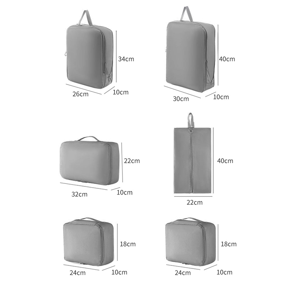 6Pcs Set Packing Cubes for Suitcases Travel Luggage Organizers Clothing Sorting Bags Grey
