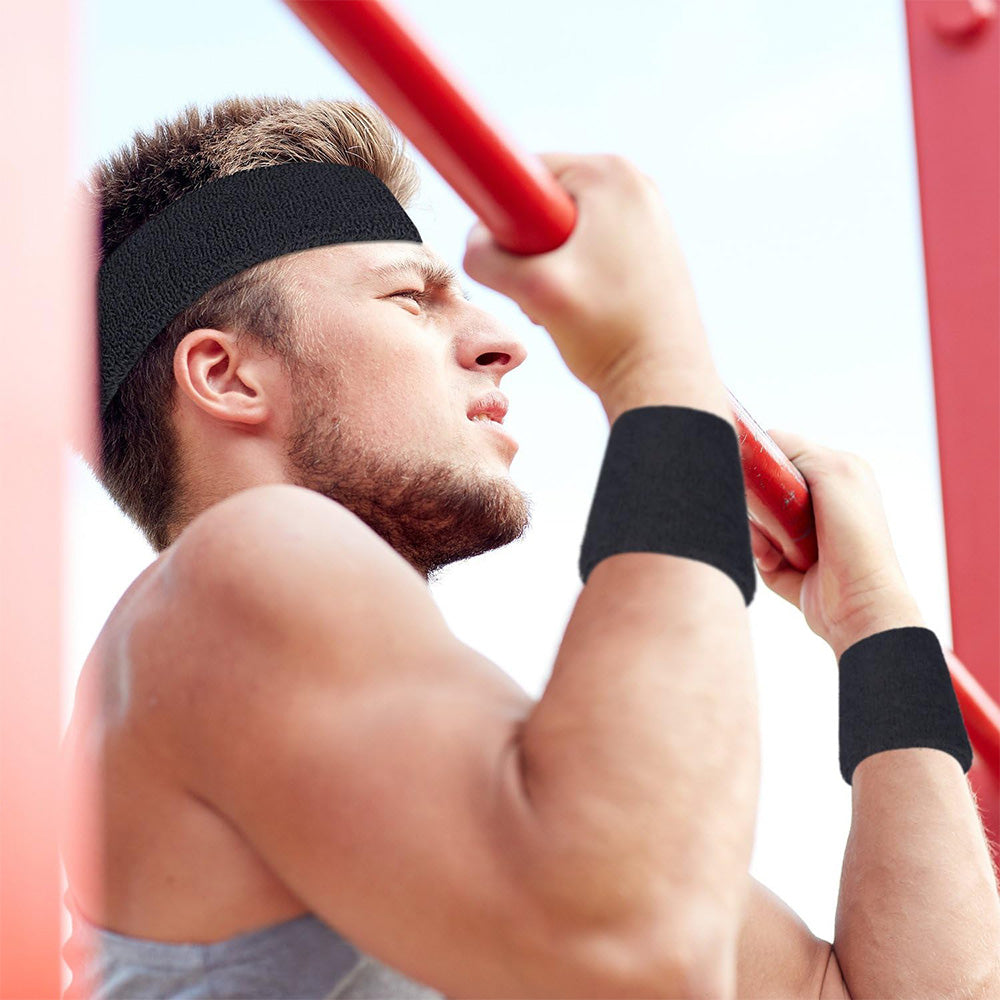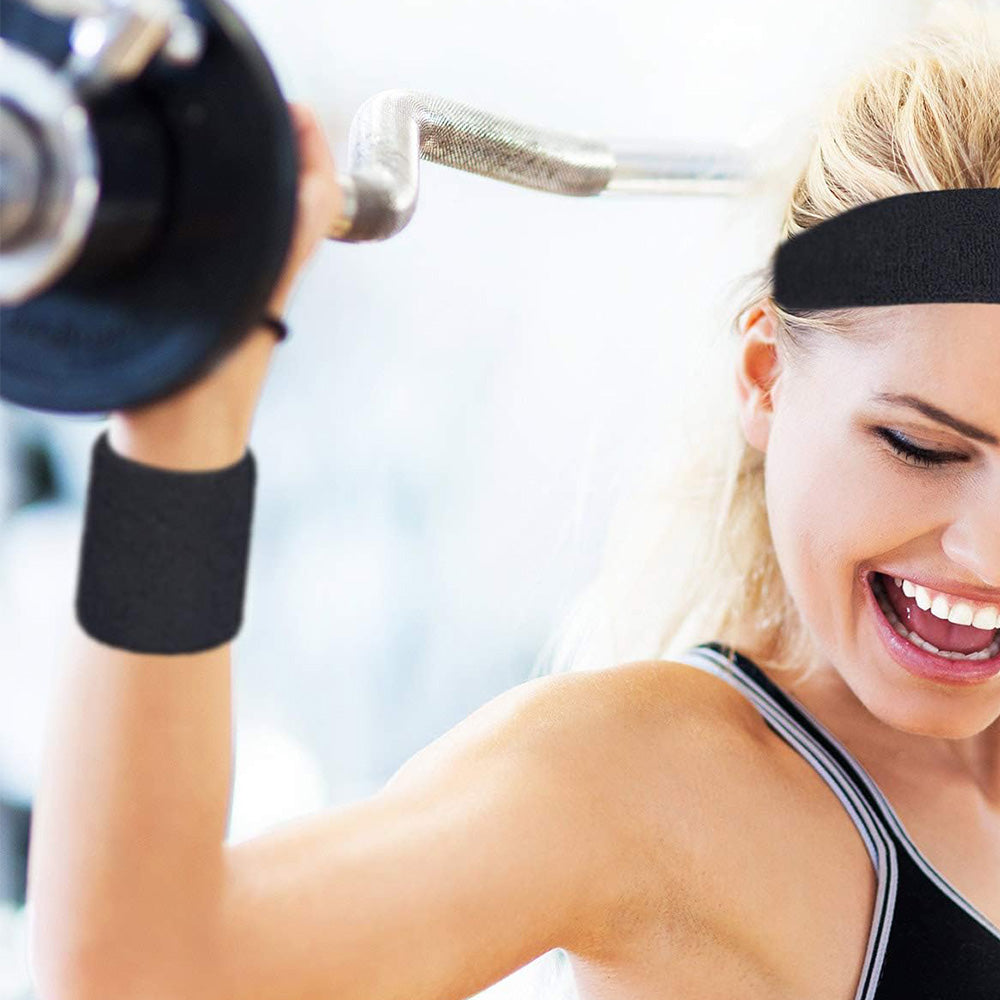 6Pcs Set Sweatbands Sports Headband Wristbands for Sport Tennis Badminton Yoga Black