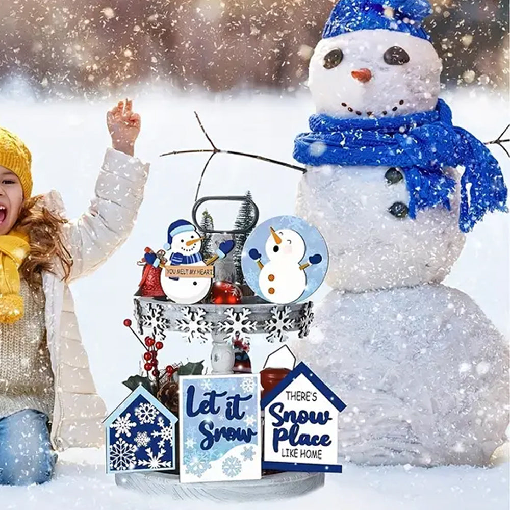 6PCS Winter Atmosphere Christmas Tiered Tray Decor Tabletop Farmhouse Signs