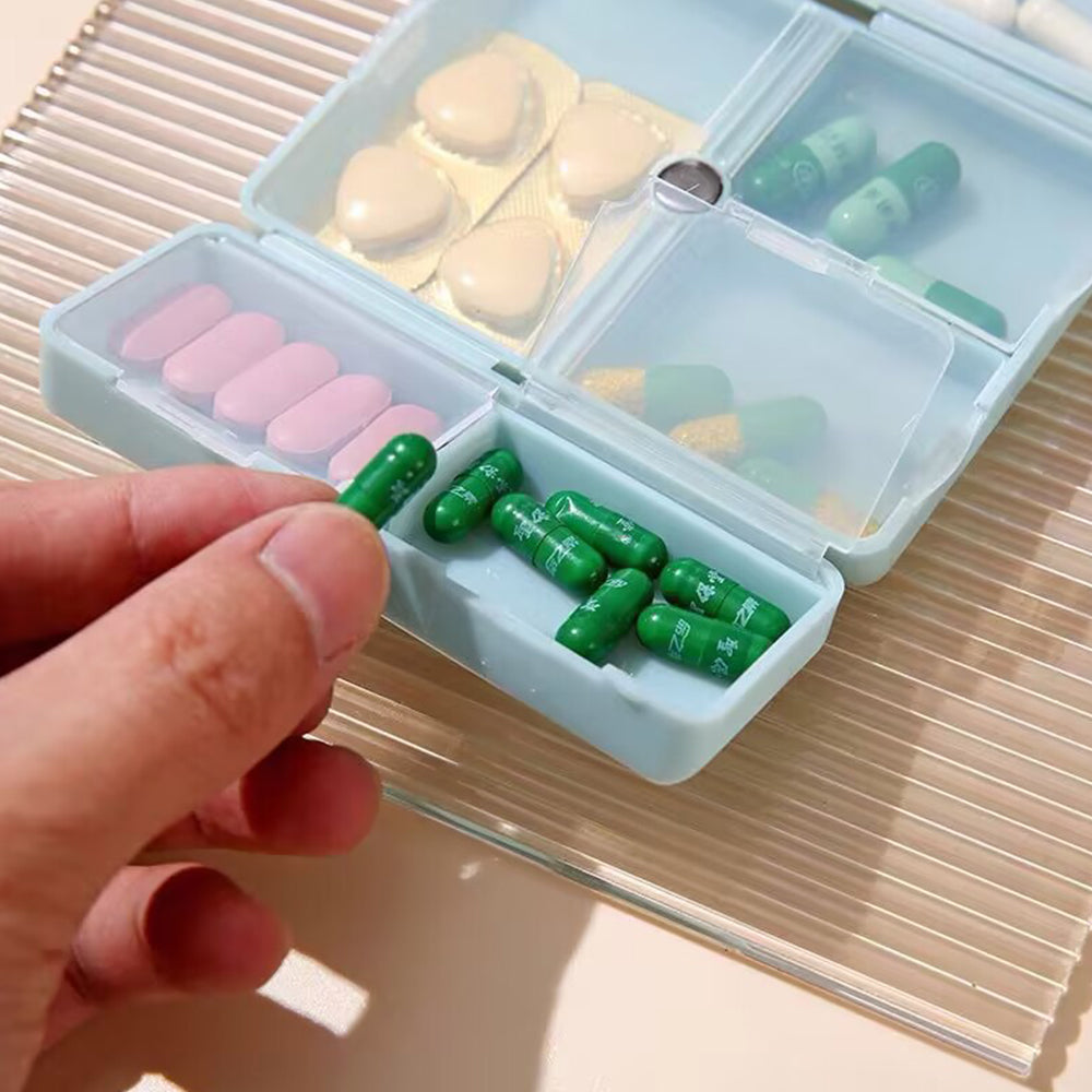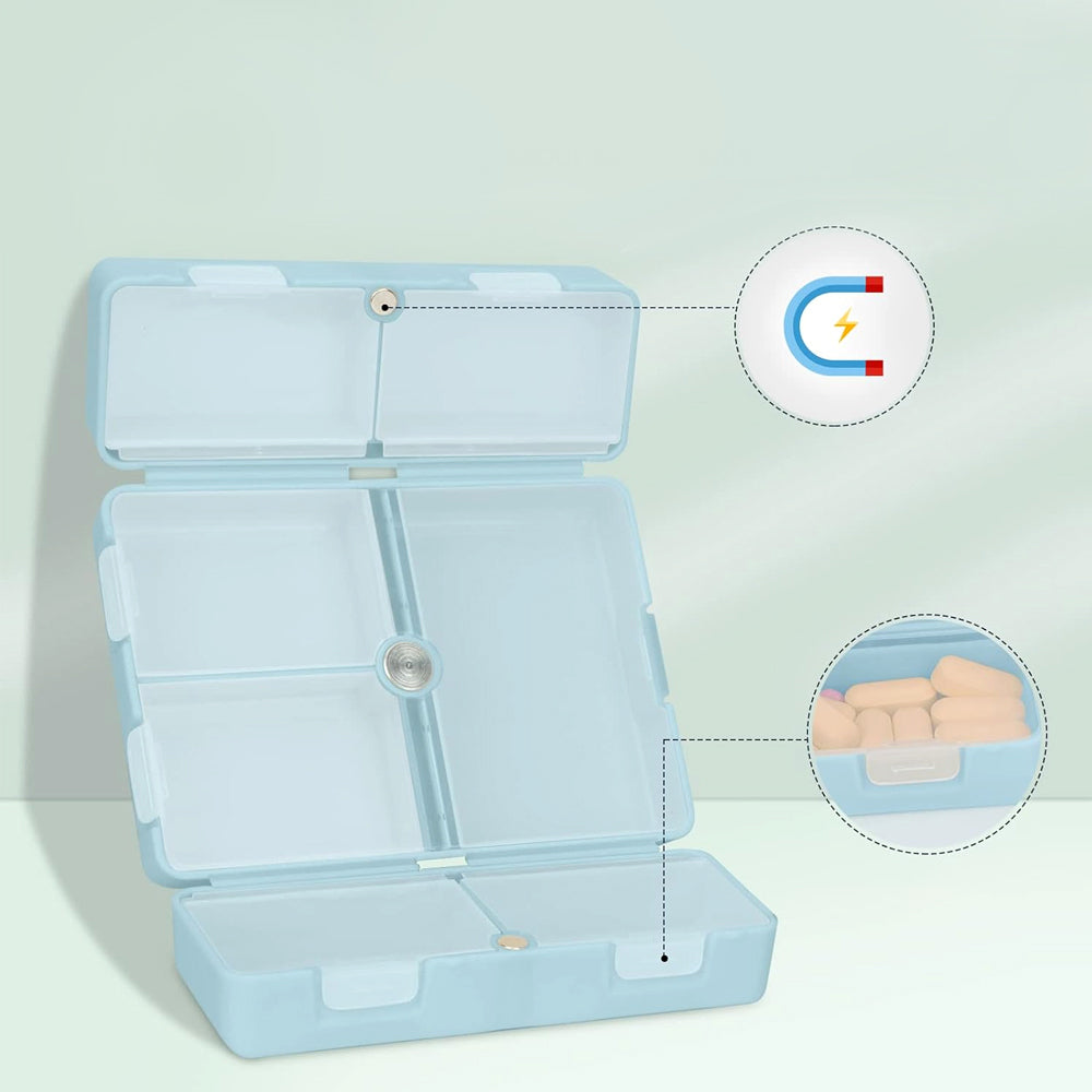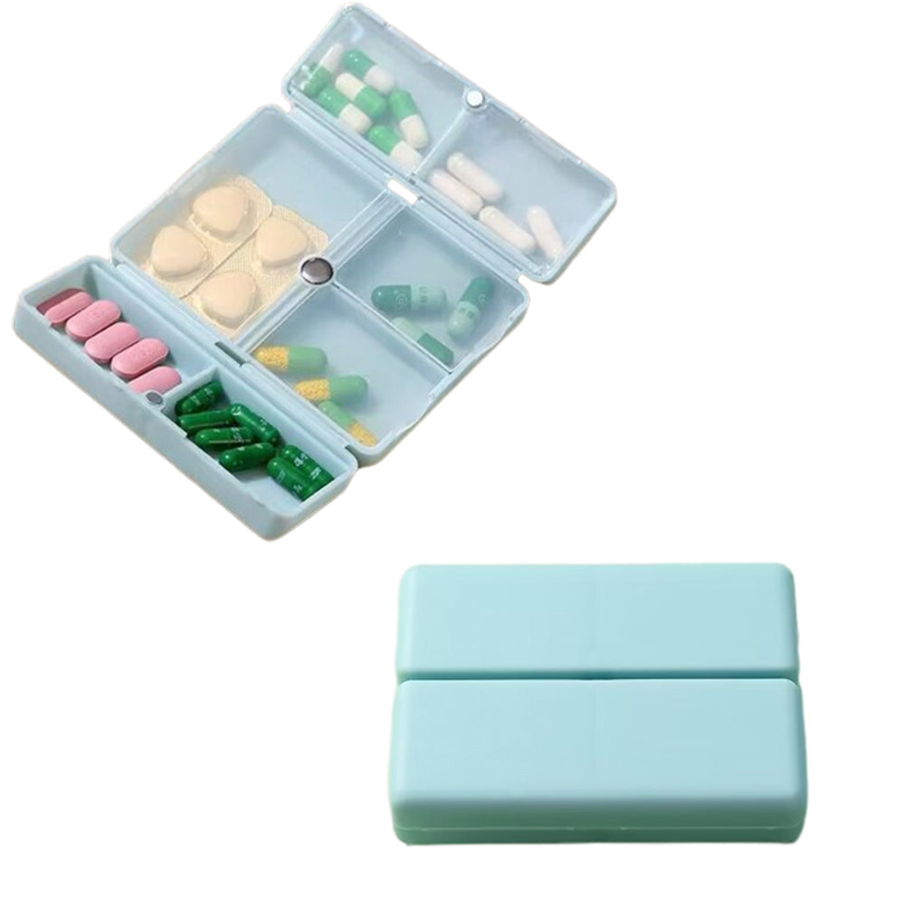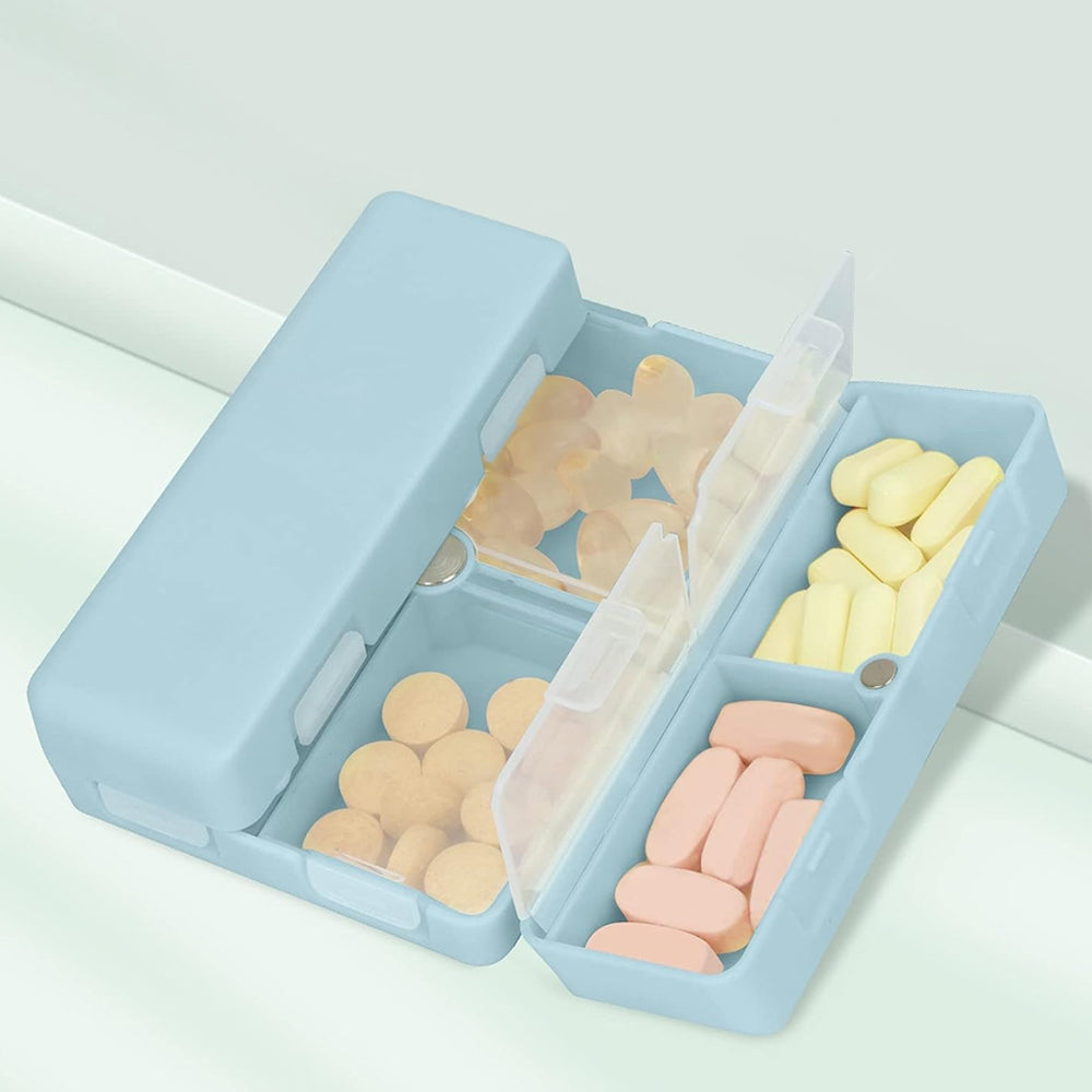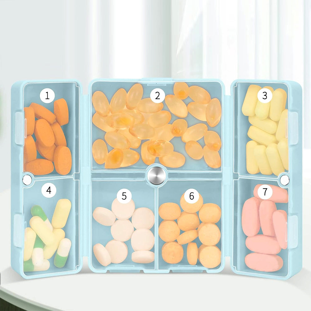7-Compartment Folding Pill Case Portable Travel Daily Pill Organizer Blue