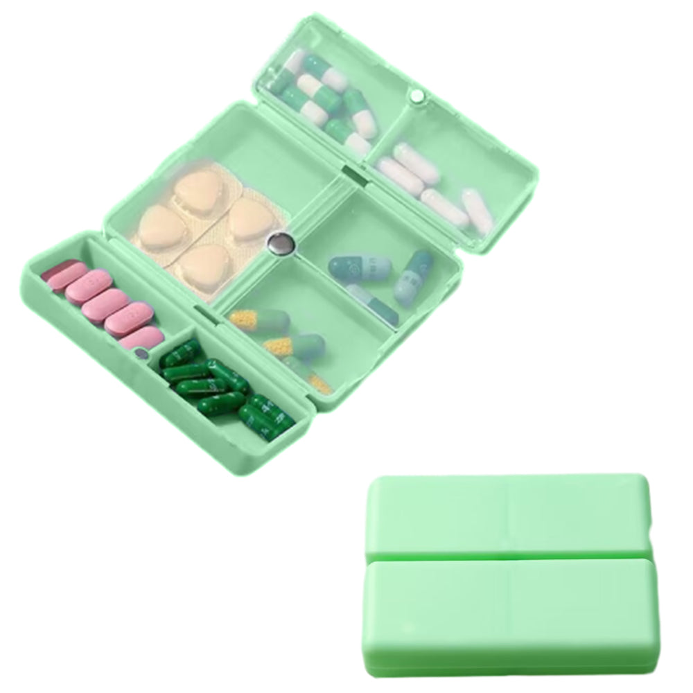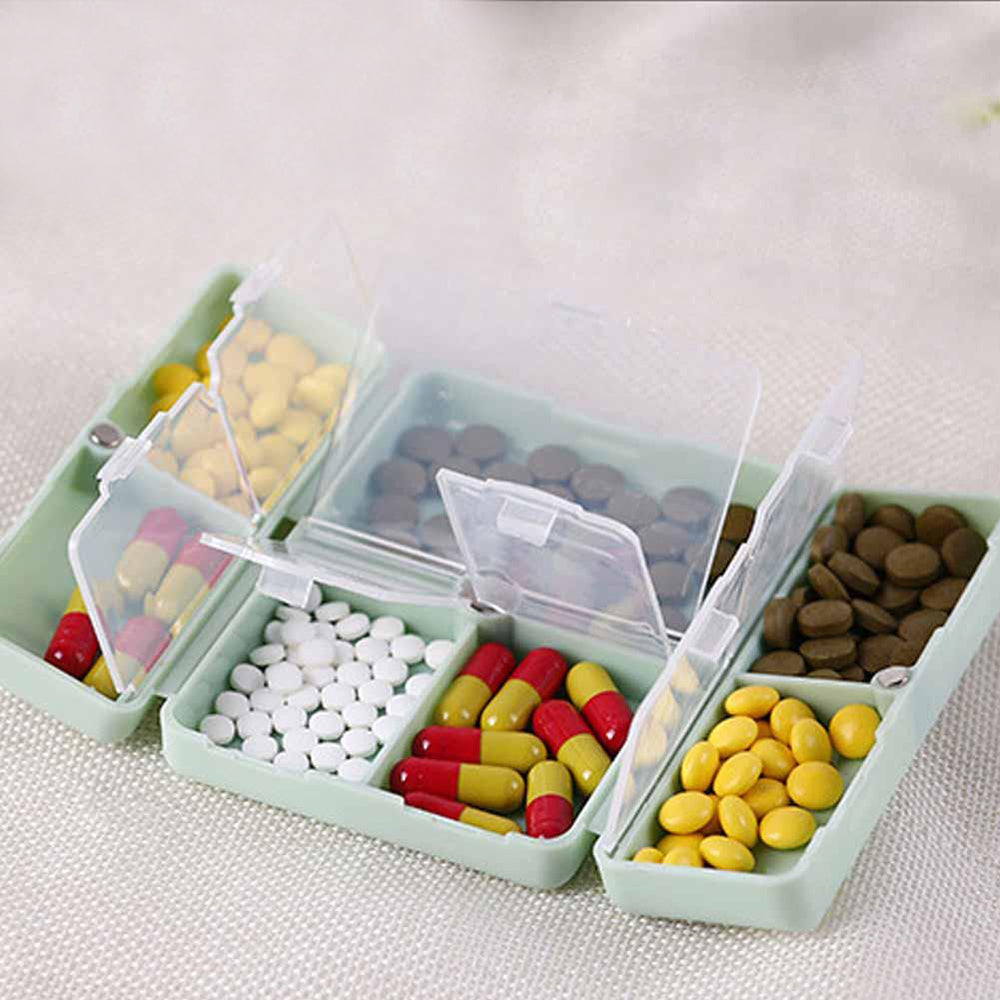 7-Compartment Folding Pill Case Portable Travel Daily Pill Organizer Green