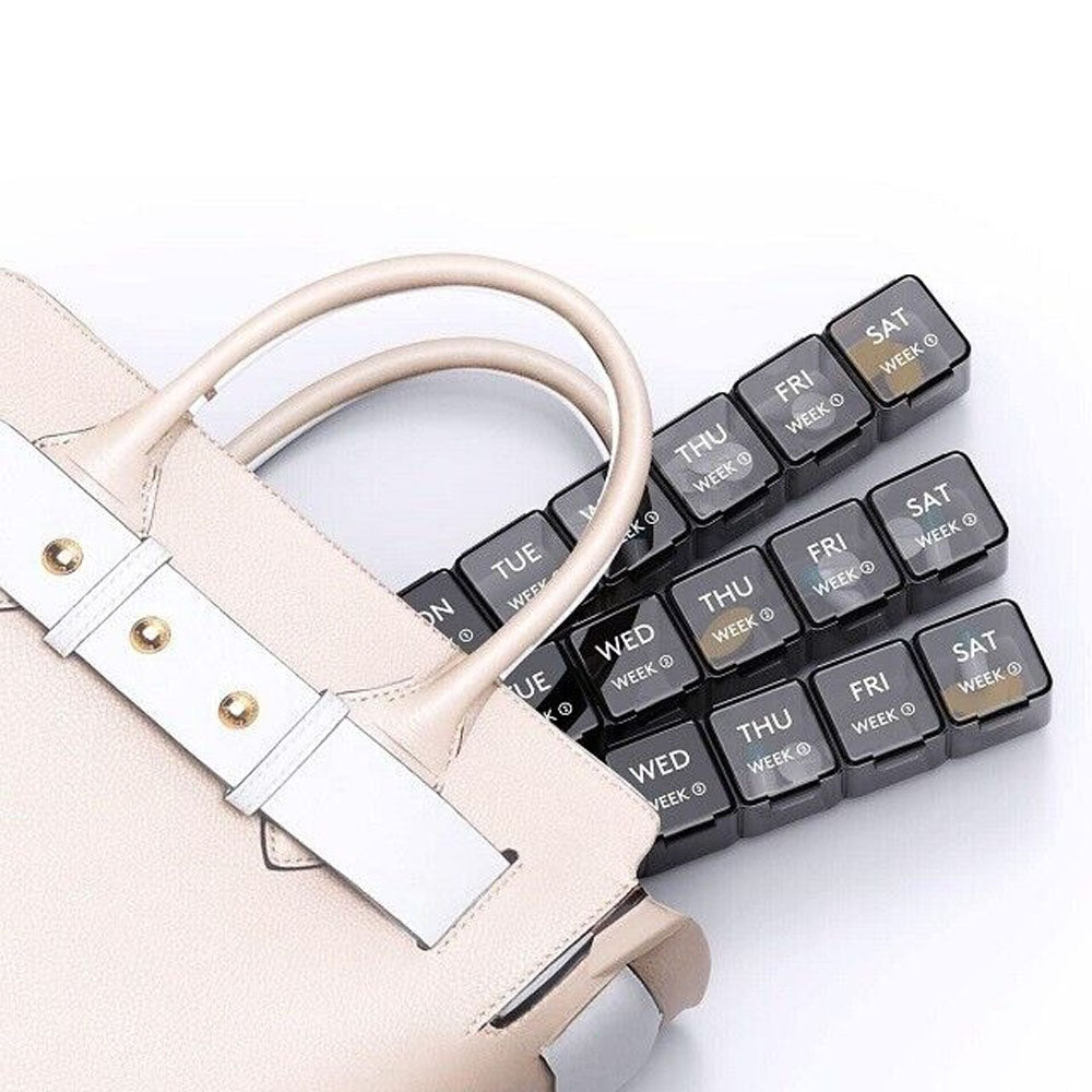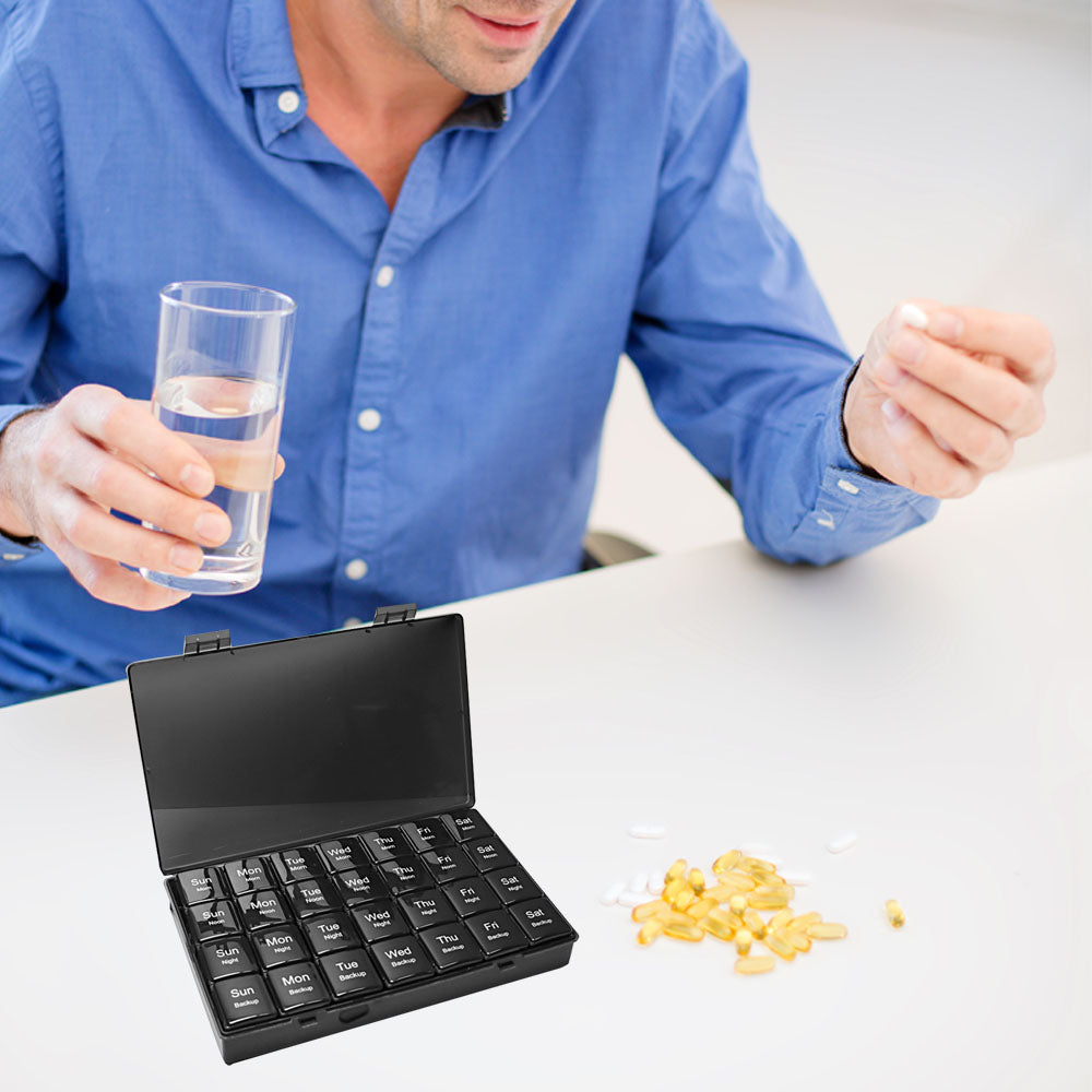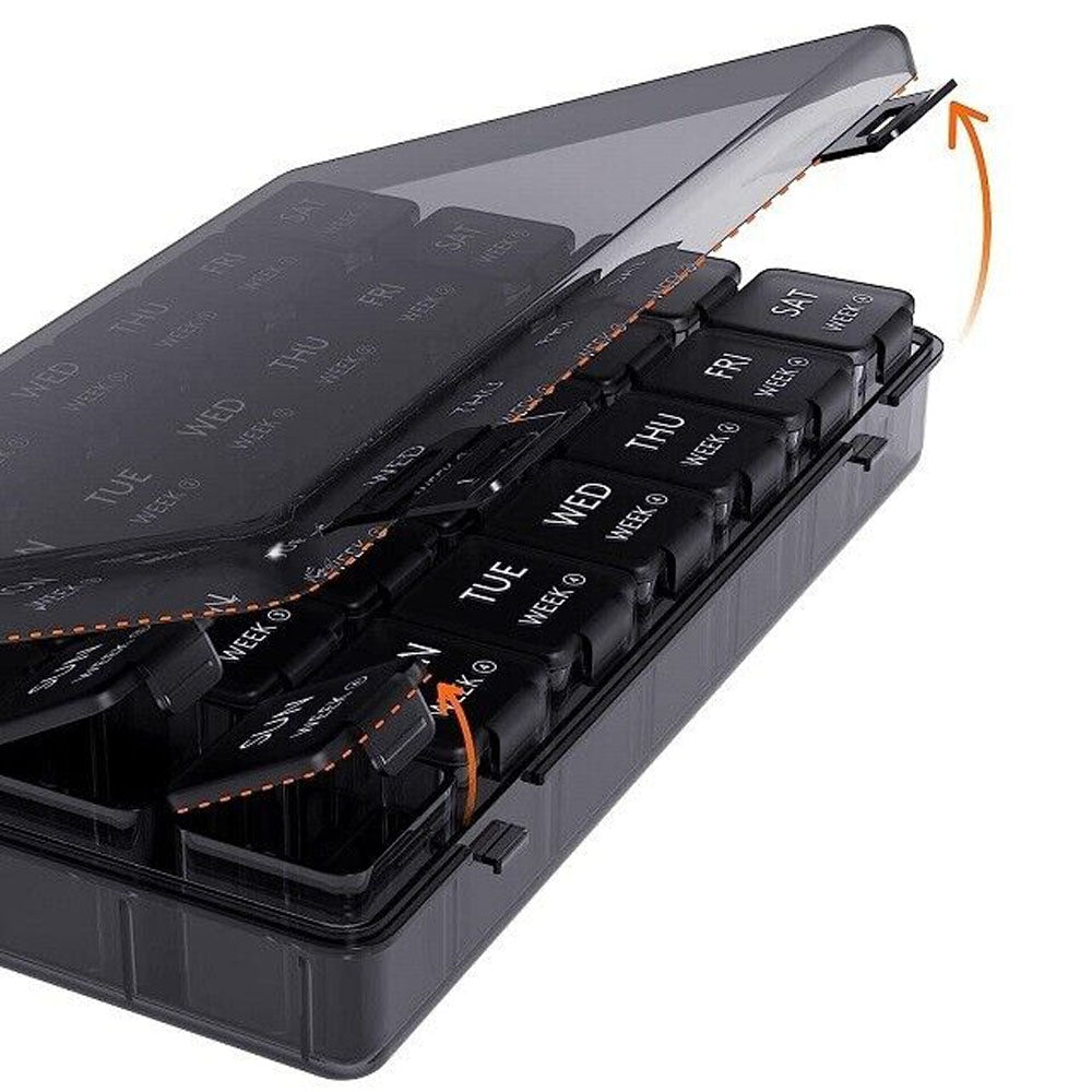 - With a double case design, all trays are securely stored in one large box, preventing spills and ensuring your pills stay intact.