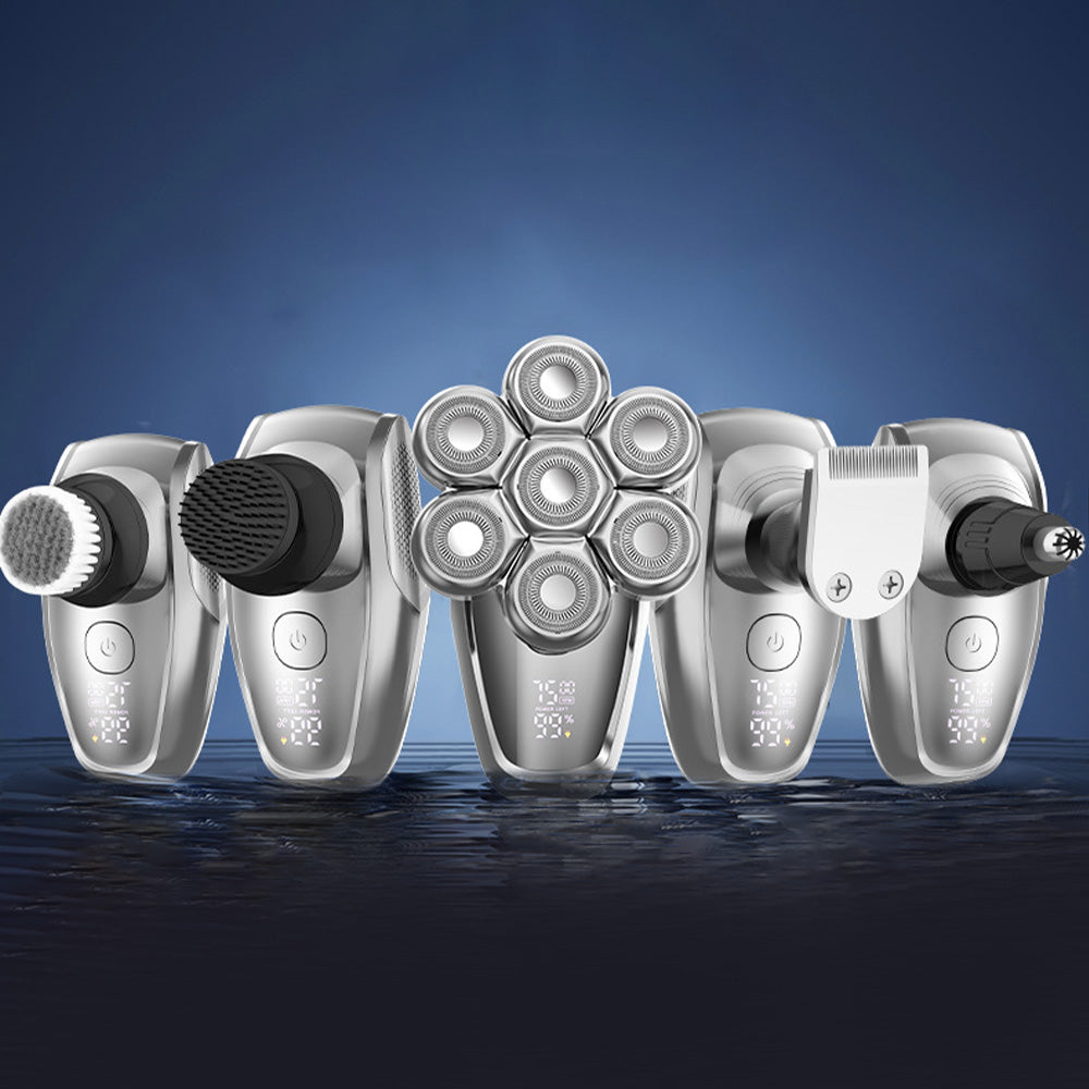 7-Head Razor Set LED Display Shaver with 5 Detachable Head for Smooth Shaving and Grooming