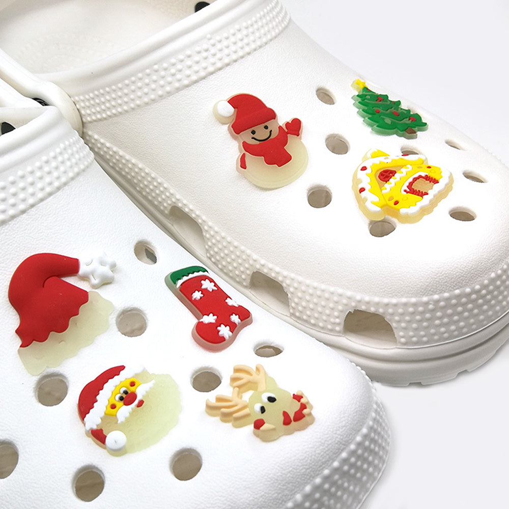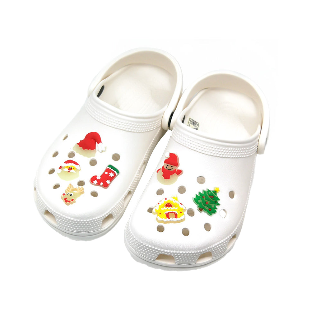 - This shoe charms kit includes 70 pieces in 7 different Christmas-themed designs.