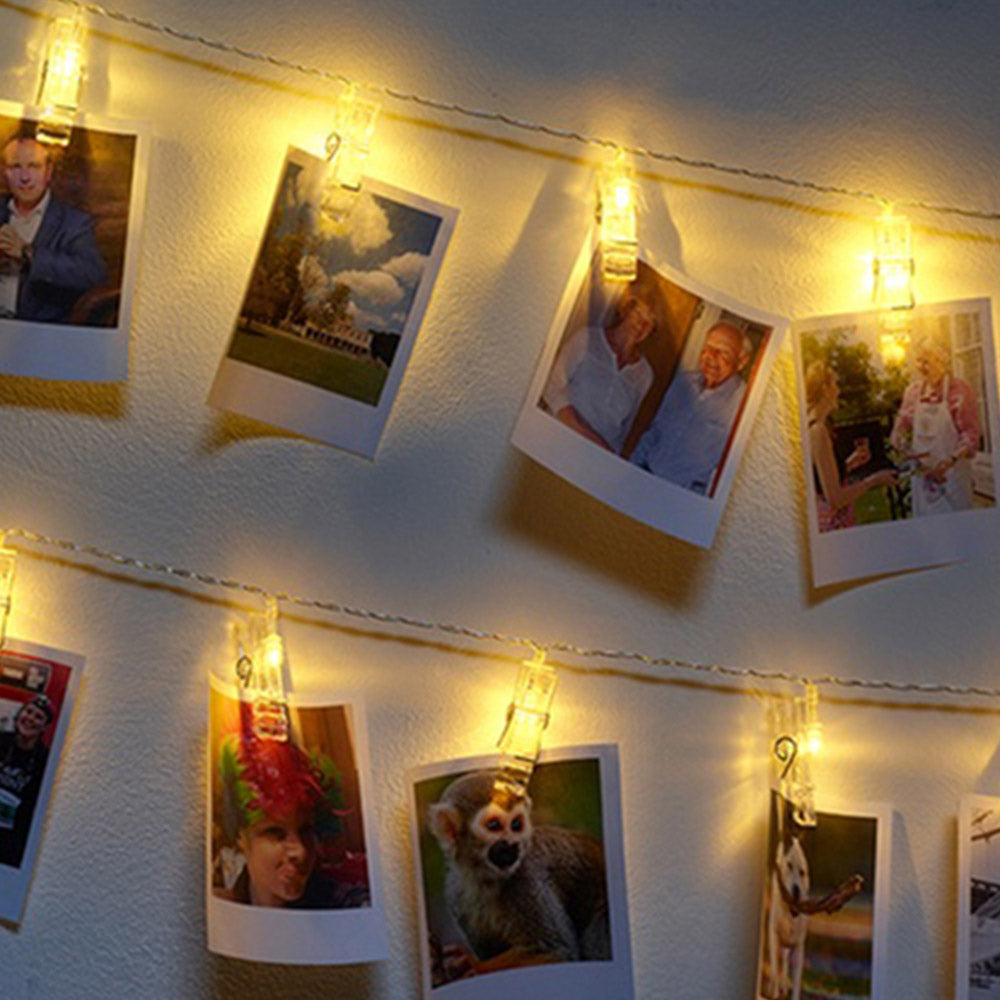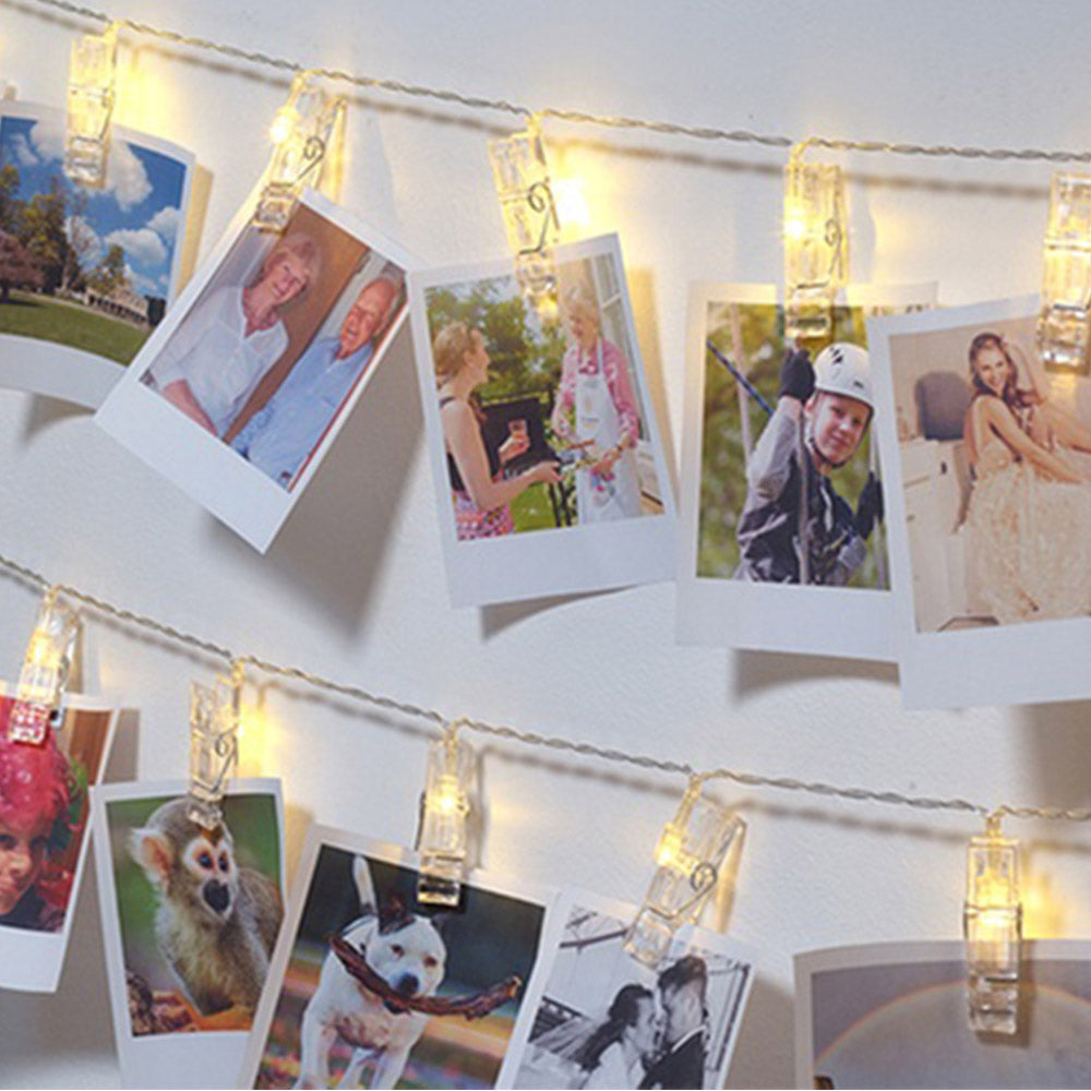 Ideal as a bedroom or living room decoration, these wall string lights emanate a soft glow to highlight photographs held by the clips