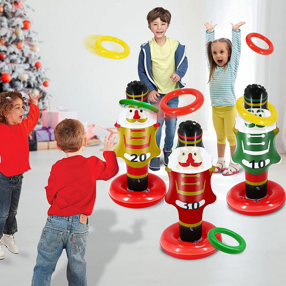 Christmas Inflatable Nutcracker with 4 Rings Throwing Toy