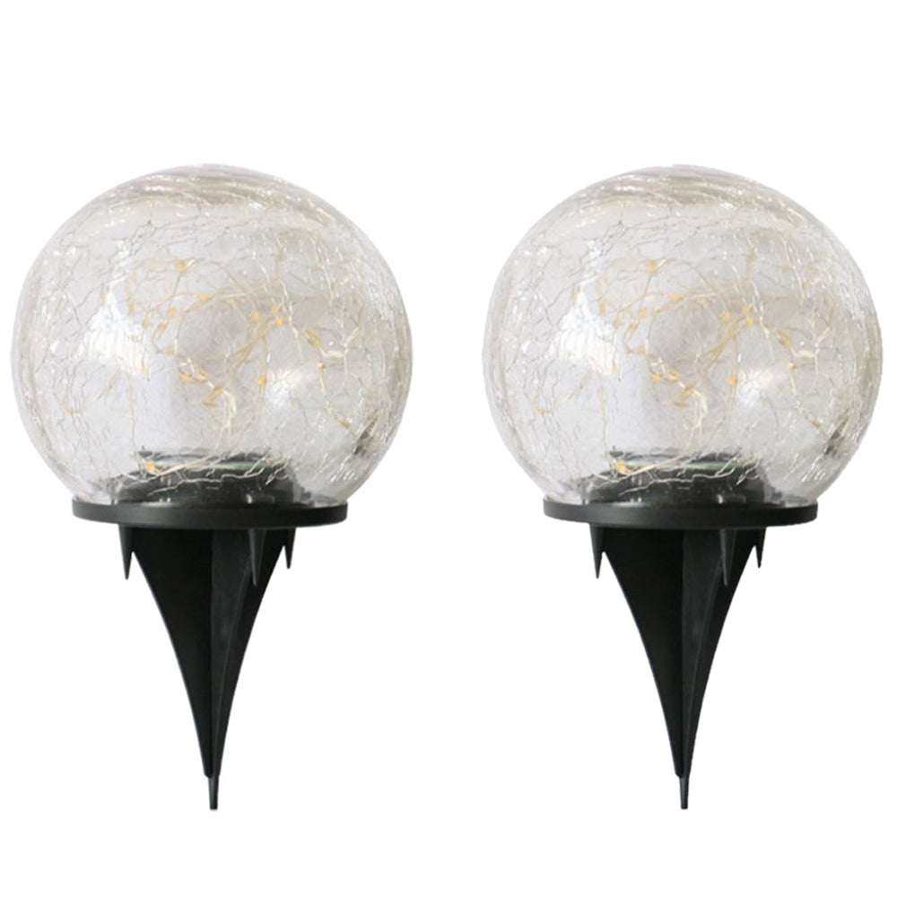 2pcs Cracked Glass Solar Globe Lights Solar Powered Ground Plug Light Garden Decoration Light