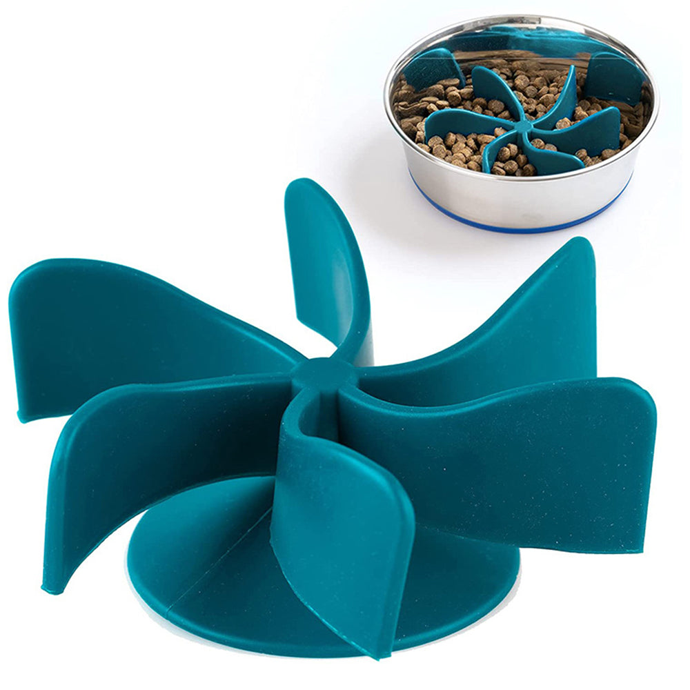 Turning your pet dog bowl into a slow-feed dog bowl with a spiral slow-feeder plug-in will help slow your pet's eating rate, thereby helping digestion and proper eating.