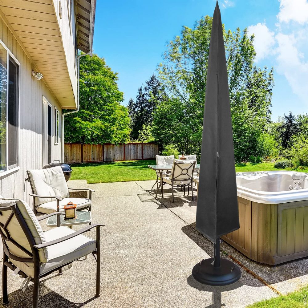The patio parasol cover is made of Oxford cloth material which protects your outdoor patio umbrella from cracking, fading, tearing.