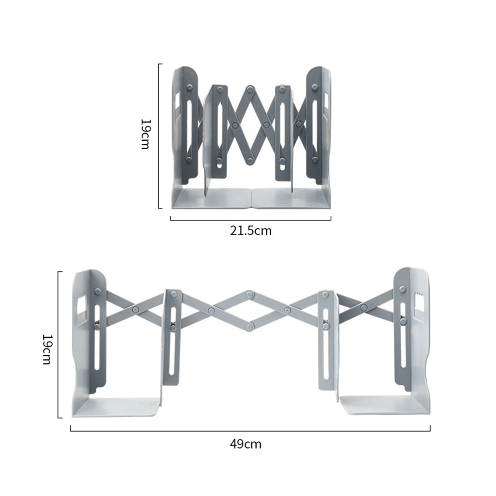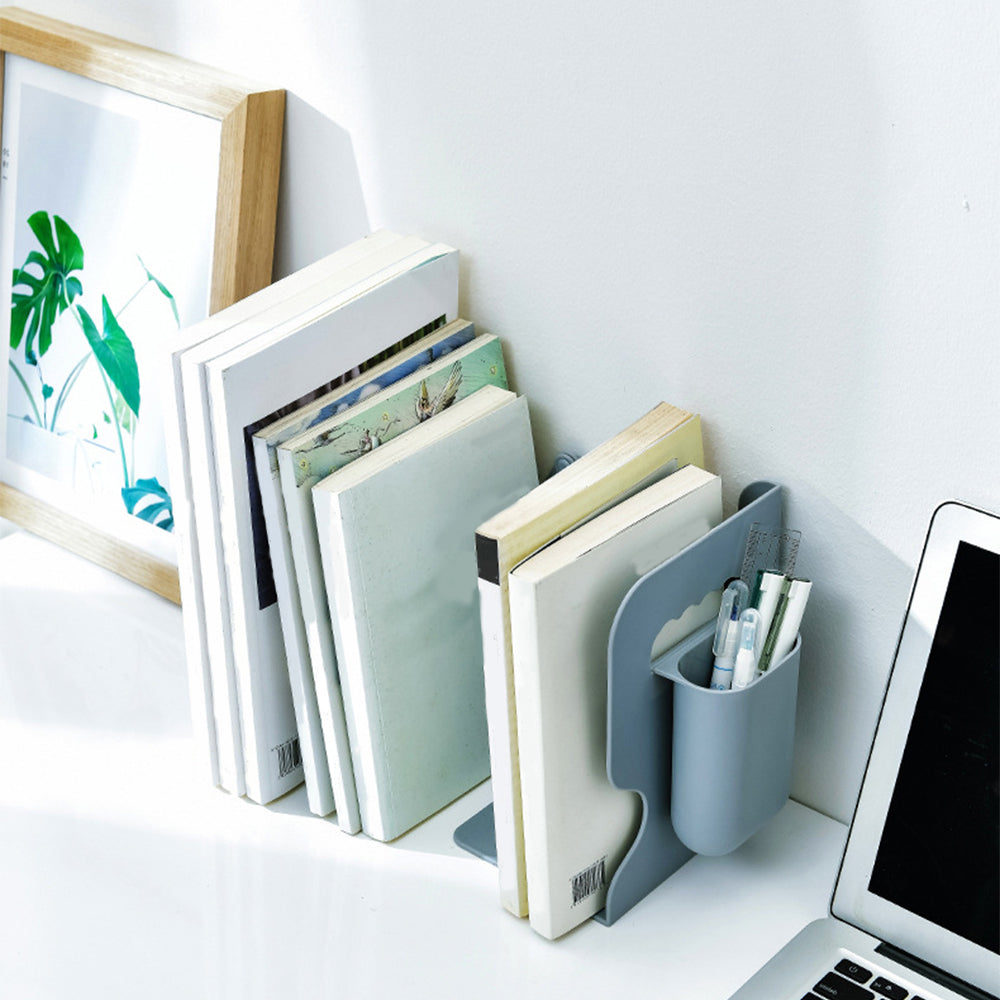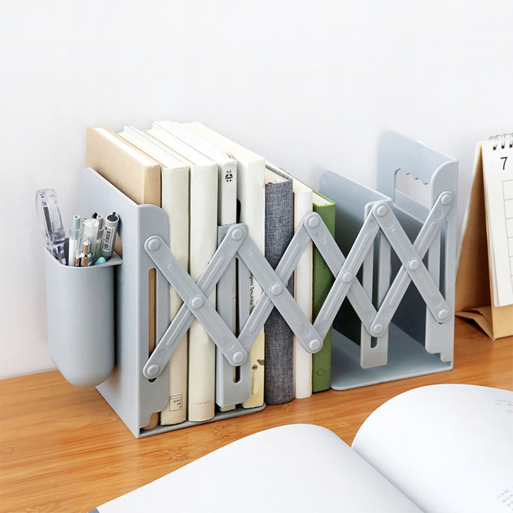 Retractable Bookends Adjustable Desktop Bookshelf with Pen Holder Grey