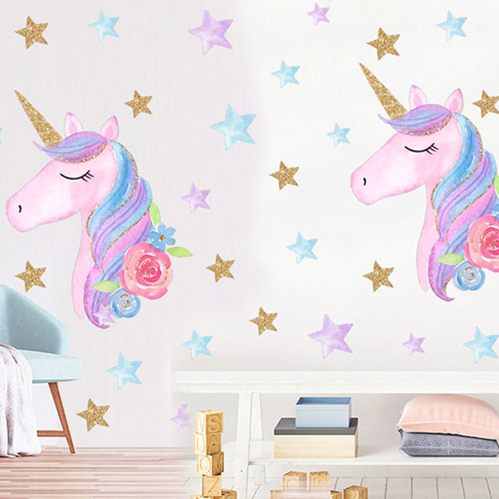 1 or 2 Sets of Unicorn Wall Stickers Kids Bedroom WallPaper Home Decor