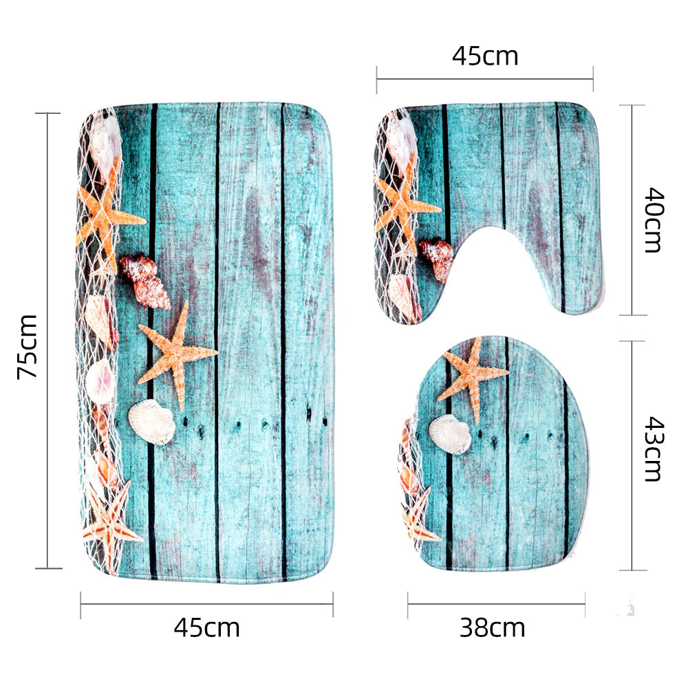 3pcs Bathroom Mat Set Home Decor Ocean Printed Bathroom Floor Mats