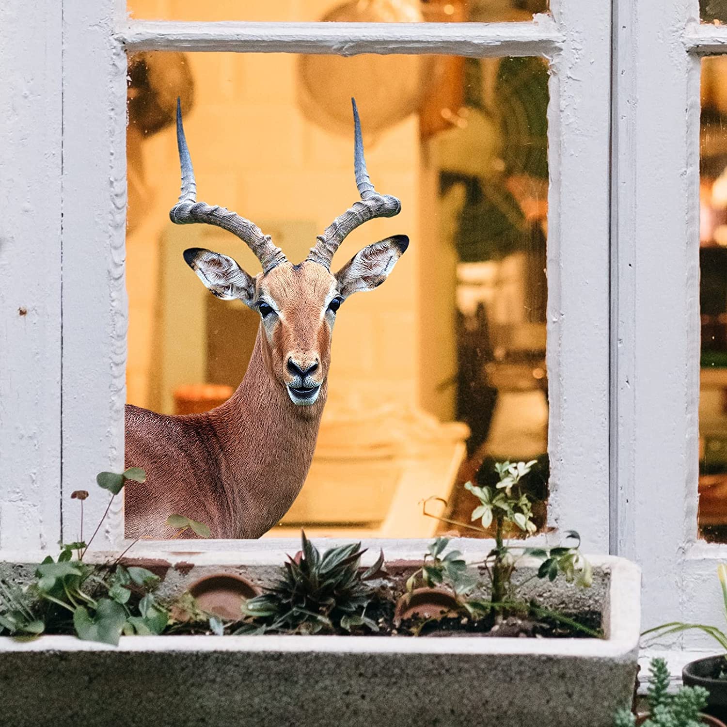 The realistic printing technique makes it appear as if there is a real animal looking out the window at you