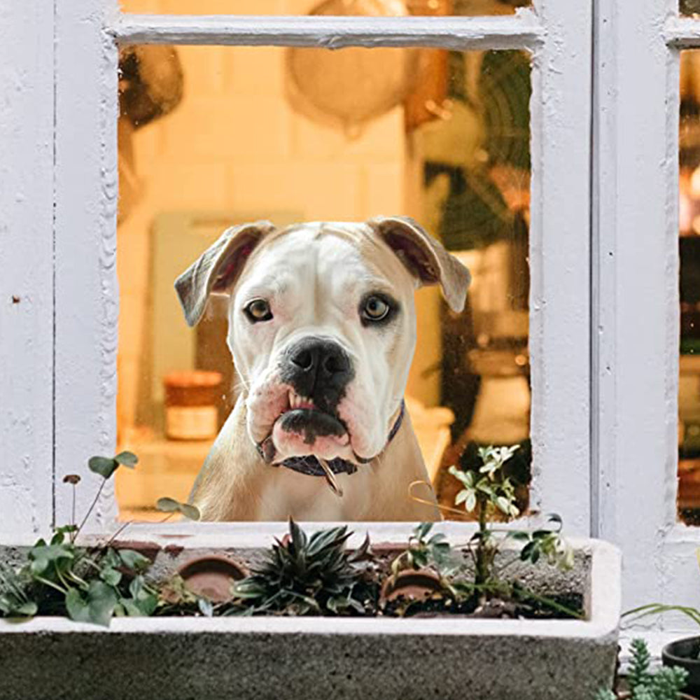 The realistic printing technique makes it appear as if there is a real animal looking out the window at you