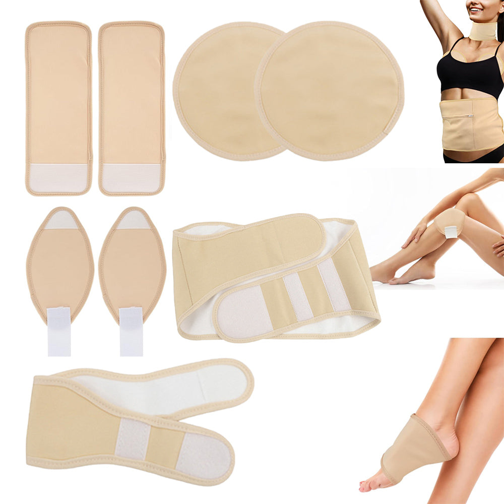 - Set includes 1 waist pack, 1 neck pack, 2 breast packs, 2 knee packs, and 2 foot packs.
