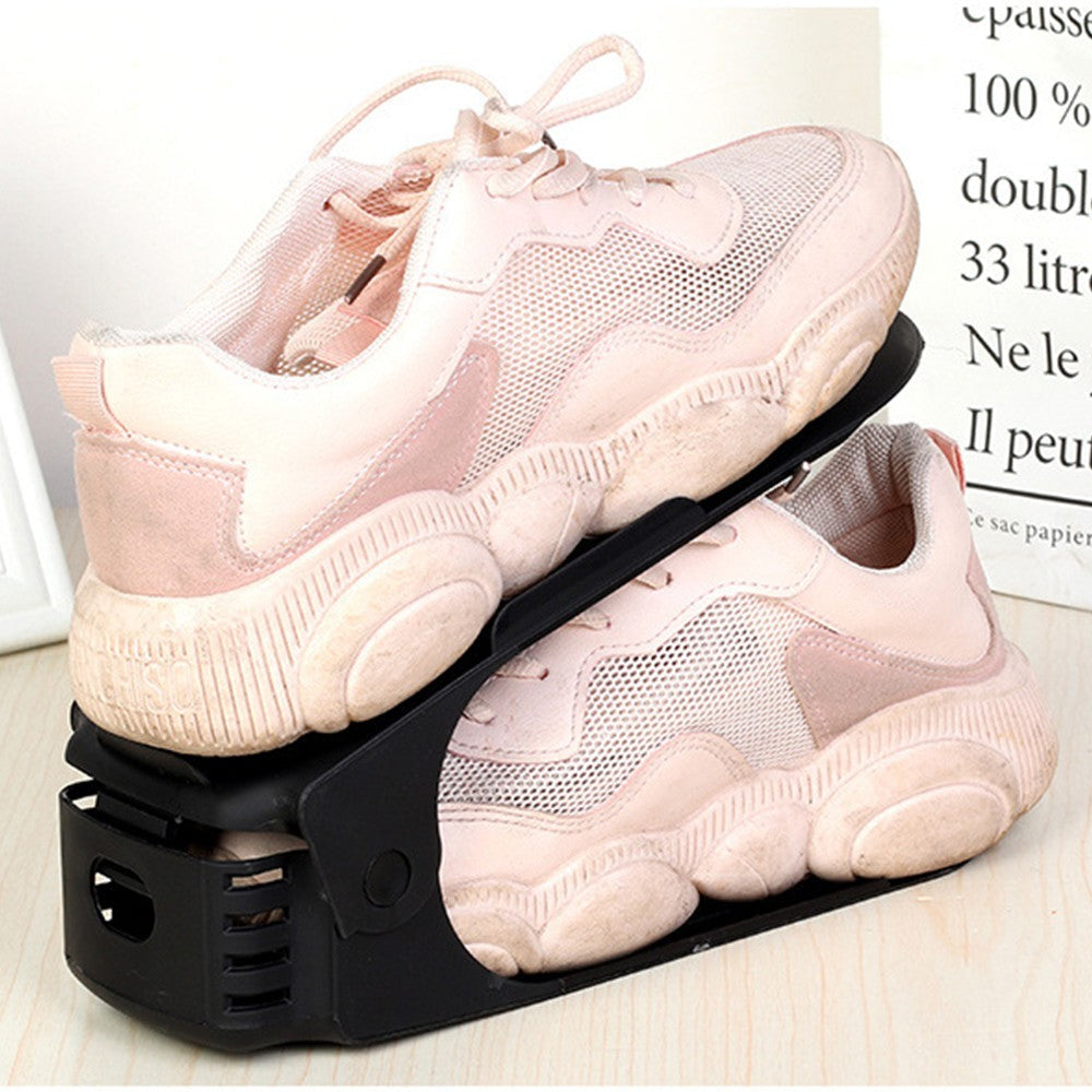 Creative and double-deck shoes shelf, designed to hold twice as many shoes as before using the same space.