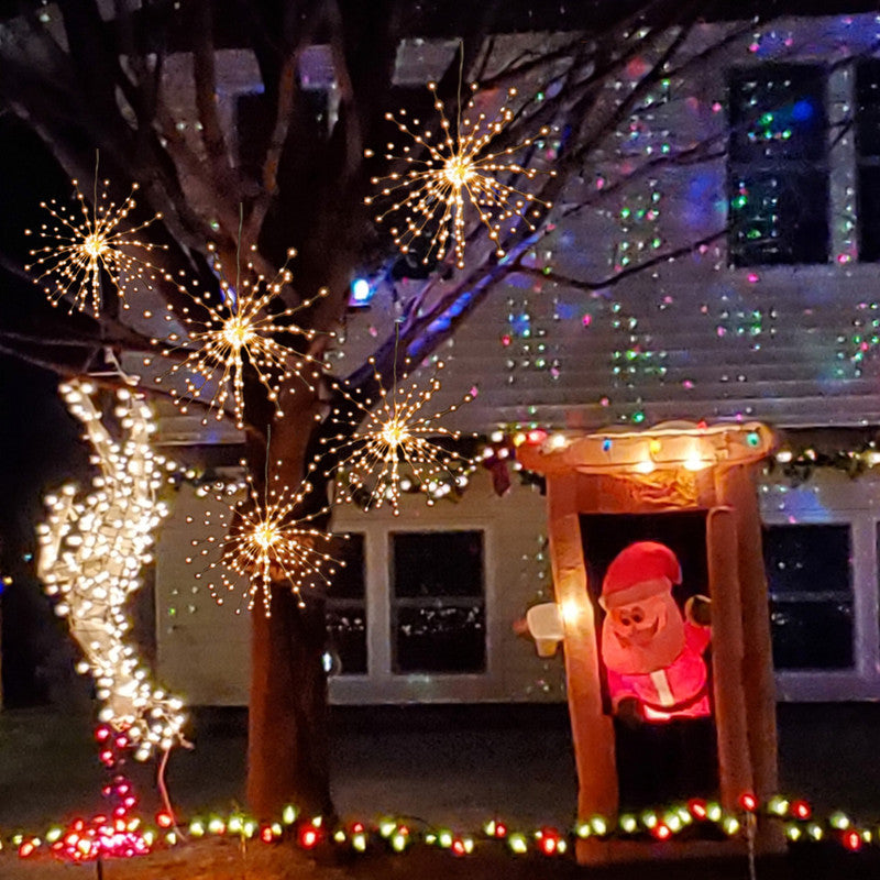 2X Warm 8 Modes DIY Starburst Solar Lights 200LED 40 Branches Fireworks Lamp