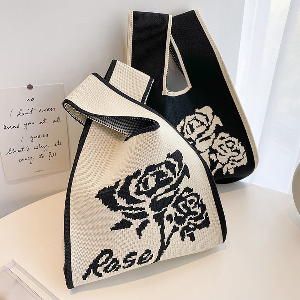 2Pcs Crochet Tote Bag Small Cute Knot Knitted Wrist Bag Rose