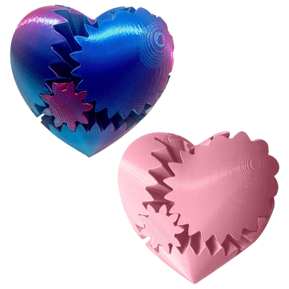 2Pcs 3D Printed Gear Ball Heart-Shaped Fidget Toy for Stress Relaxing Pink