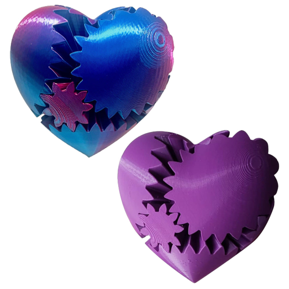 2Pcs 3D Printed Gear Ball Heart-Shaped Fidget Toy for Stress Relaxing Purple