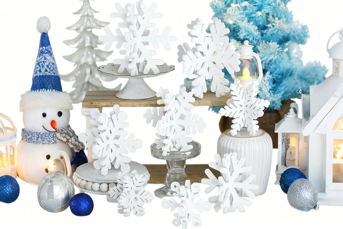 - Bring festive charm to your home with these 3D wooden snowflake decorations, perfect for Christmas and winter celebrations. Durable and reusable, they add a cheerful holiday atmosphere to any space.