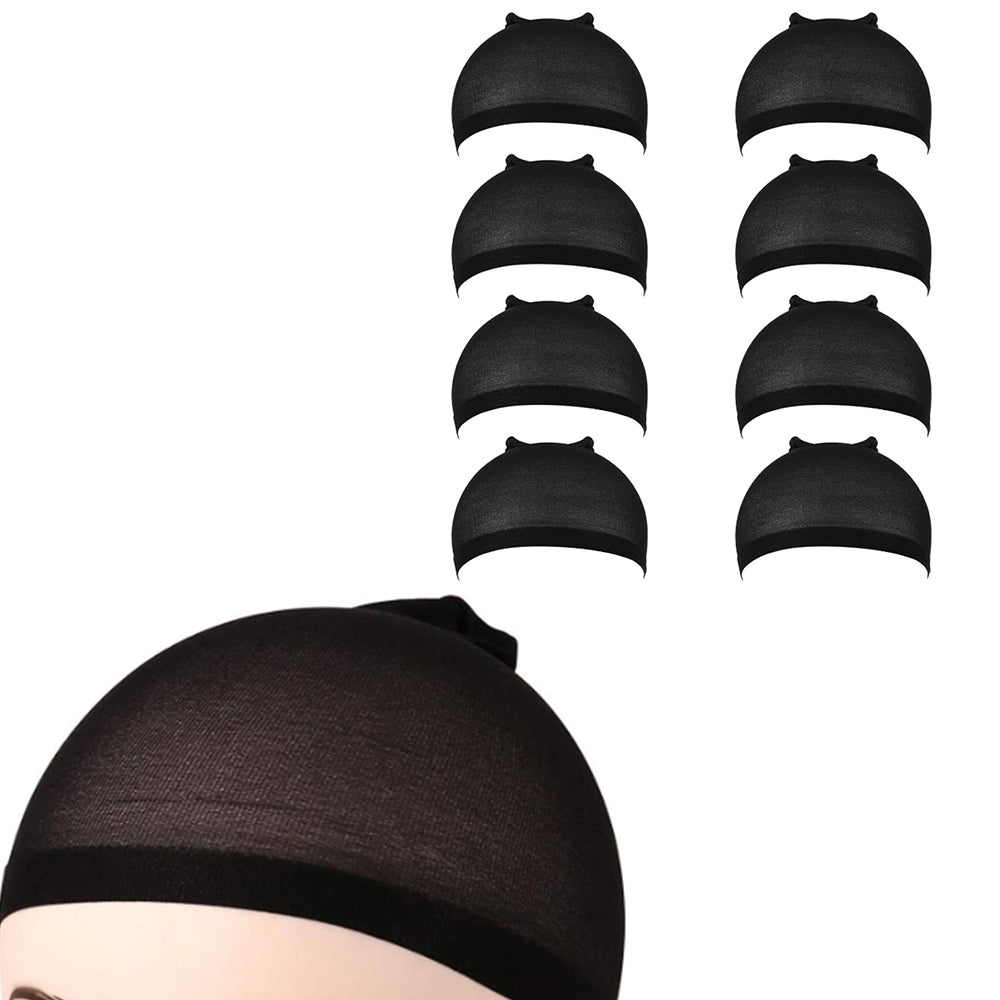 8Pcs Stocking Wig Caps Stretchy Nylon Hair Net for Women Black
