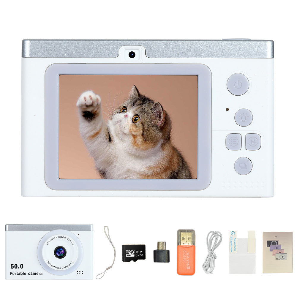 8X Zoom Digital Camera Point And Shoot Camera with 32GB Memory Card for Students White