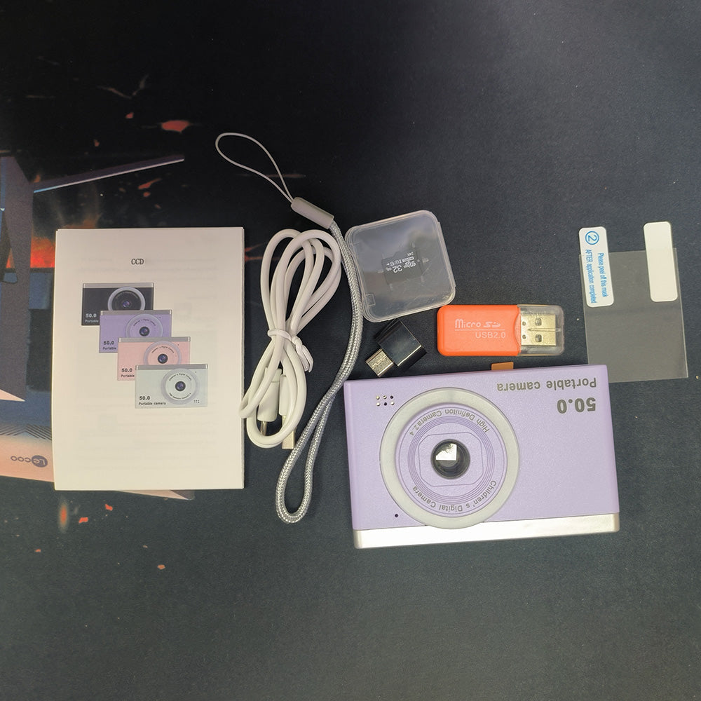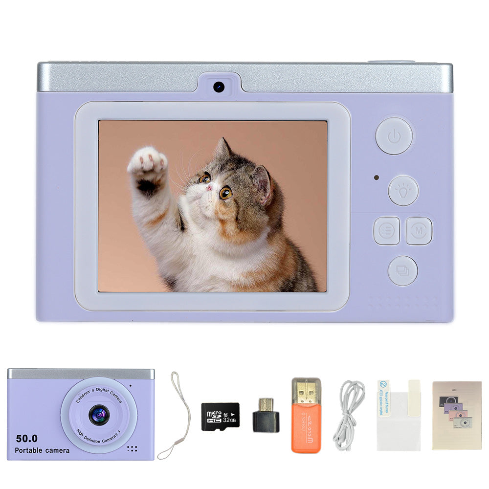 8X Zoom Digital Camera Point And Shoot Camera with 32GB Memory Card for Students Purple