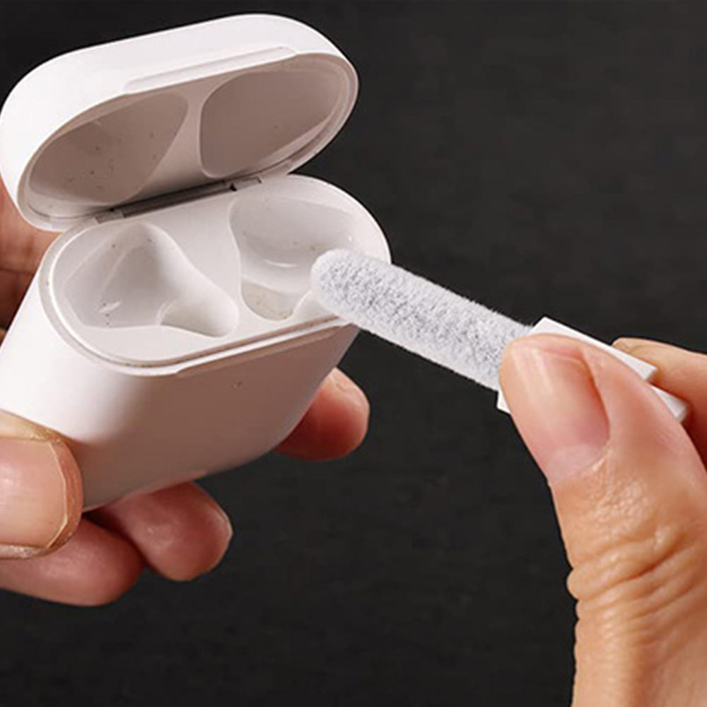 - The flocking sponge is an excellent tool for cleaning earbuds charging cases, And the earbud cleaning kit is ideal.