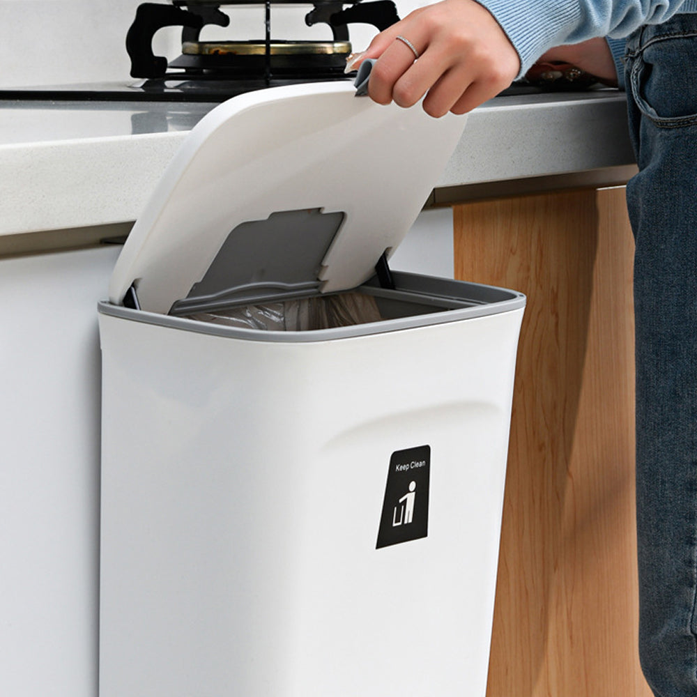 - The hanging kitchen trash can have sliding lid design.The lid is sealed which can effectively prevent the odor from escaping.