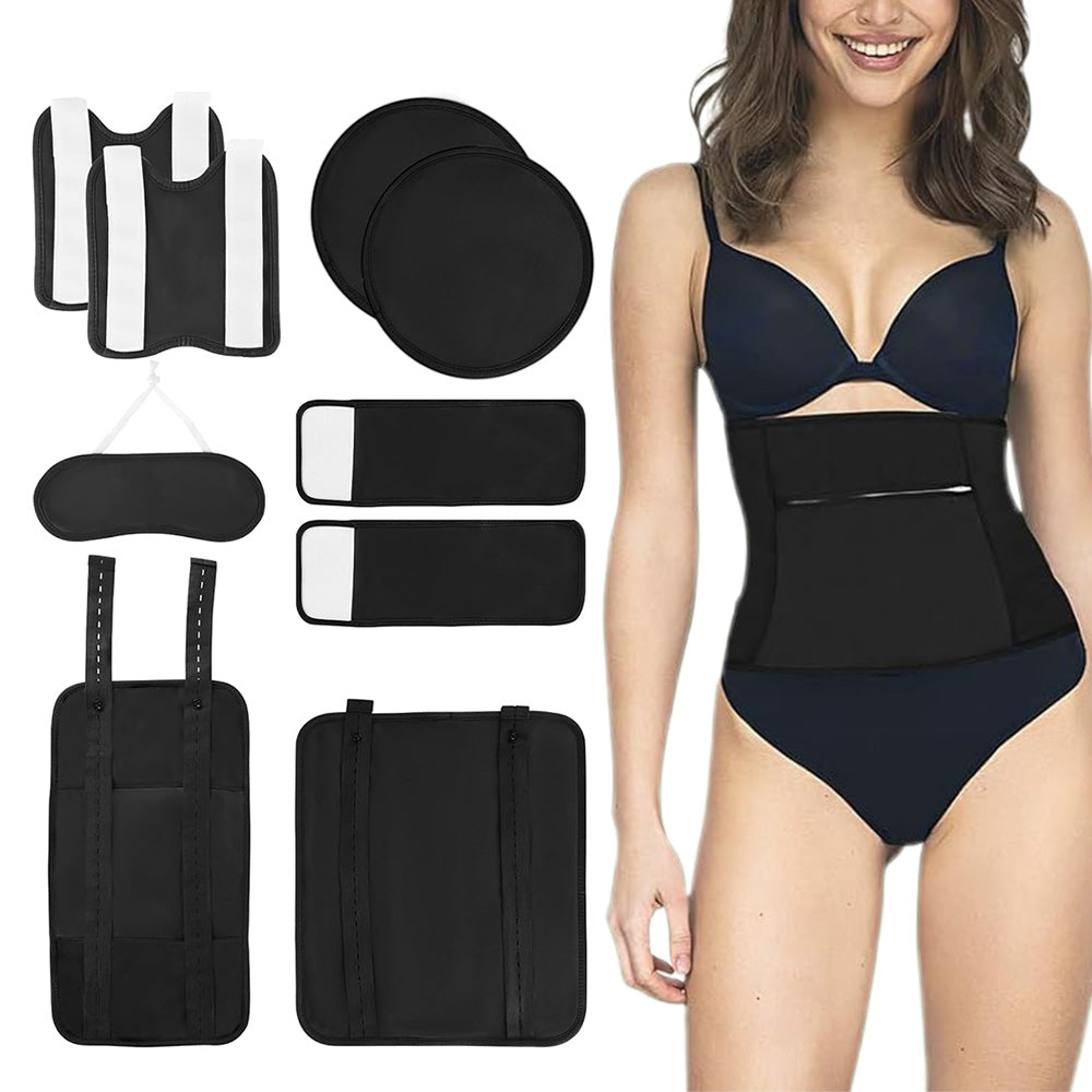 9Pcs Set Reusable Castor Oil Packs Castor Oil Compress Pads Wraps for Neck Chest Waist Chest Knee Feet Black