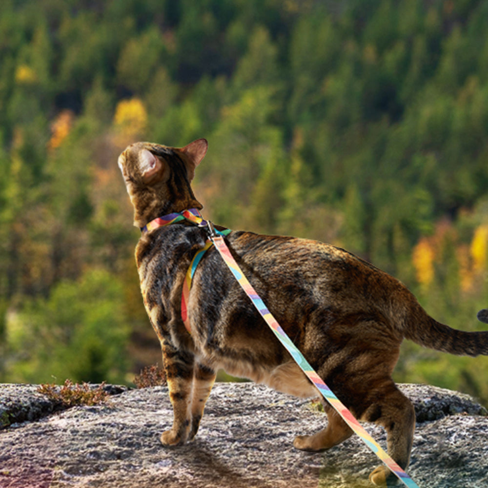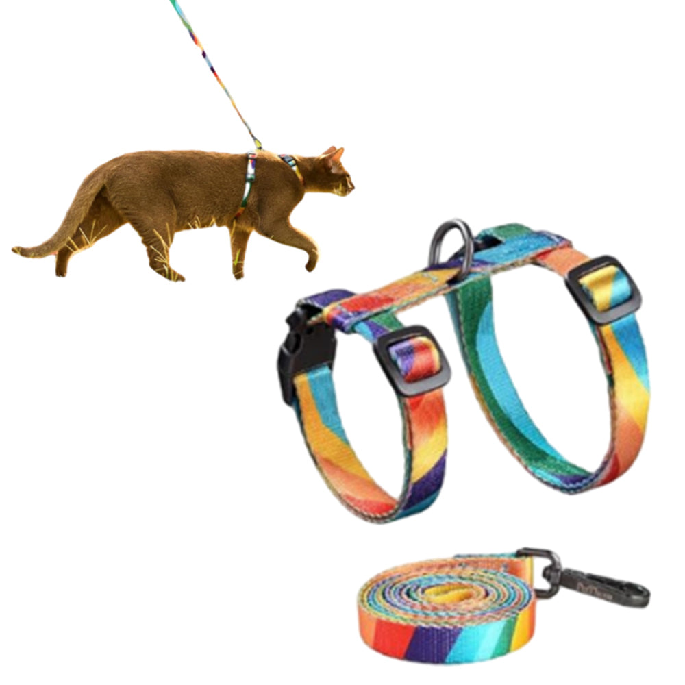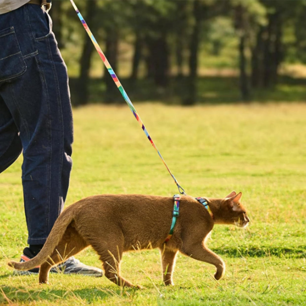 Adjustable Cat Harness and Leash Set Escape Proof Strap for Walking Travel Multicolor