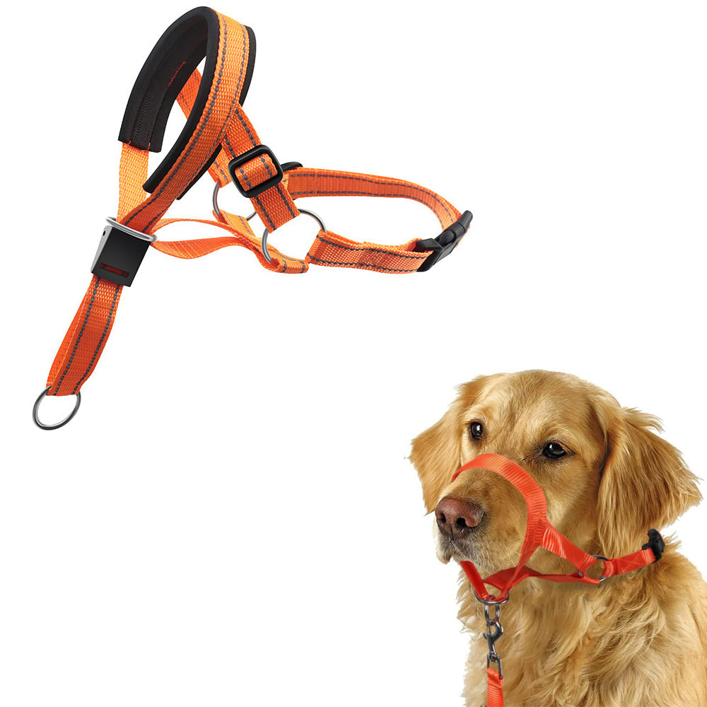 Adjustable Dog Head Collar Training Collar for Long-Snout Dogs Orange