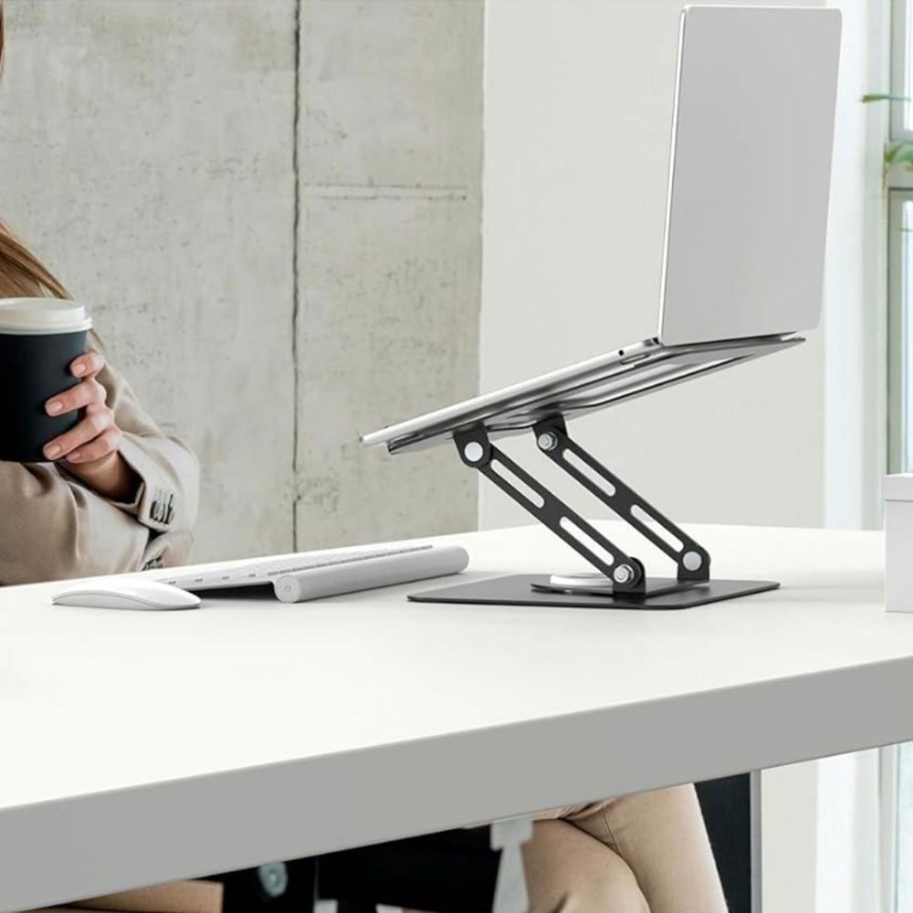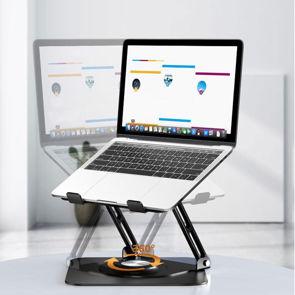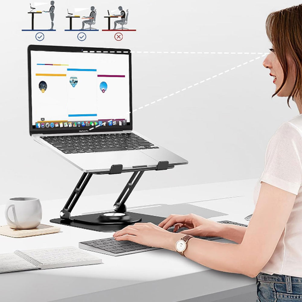Adjustable Laptop Desktop Stand with 360-Degree Rotating Base Ergonomic Laptop Riser for 10-17in Laptops Black