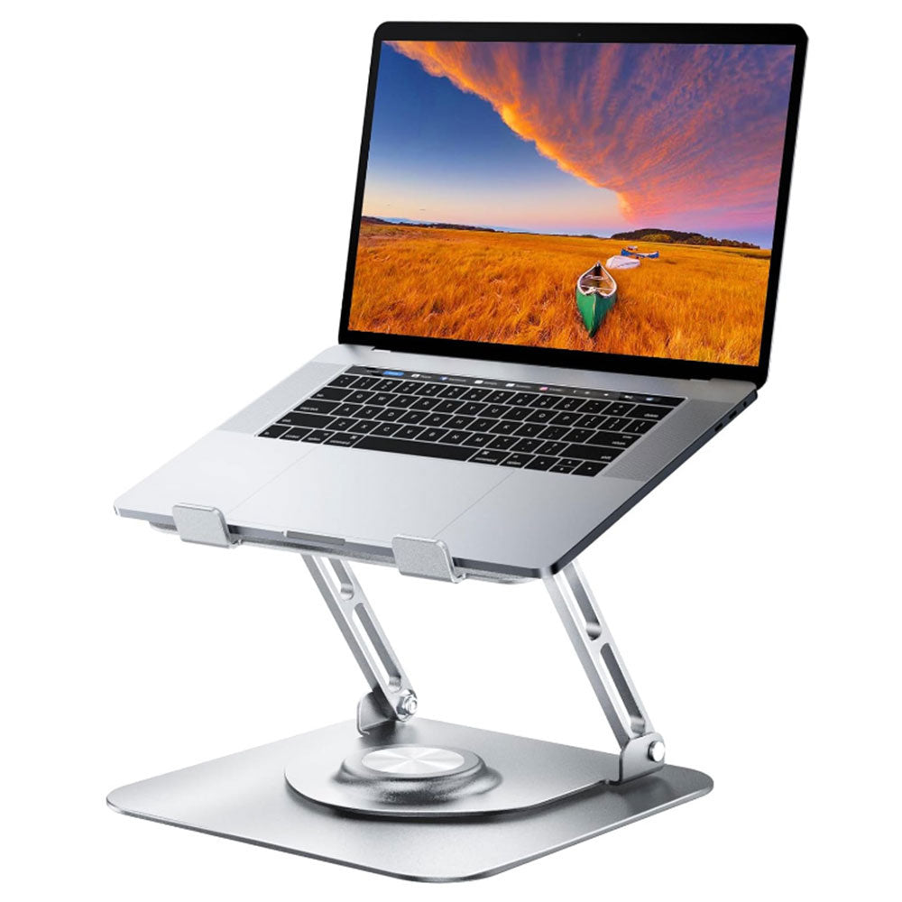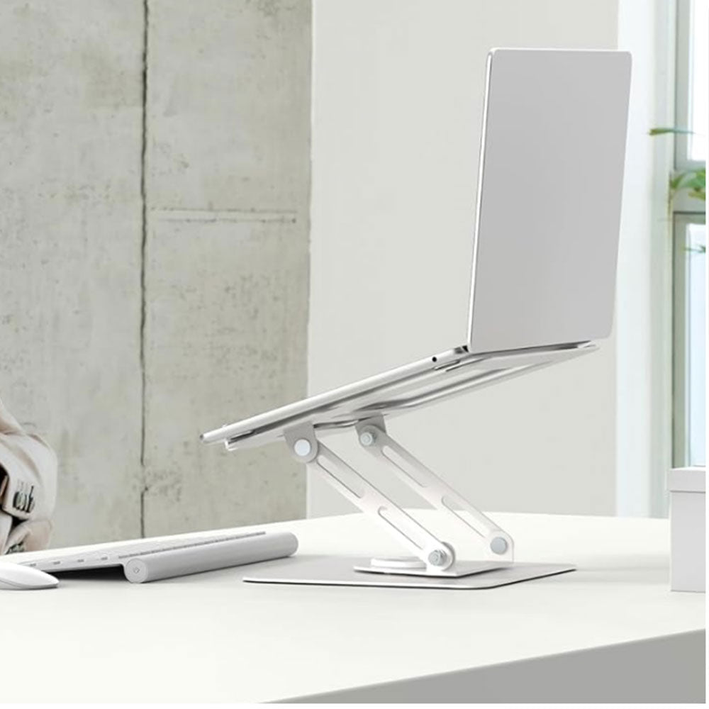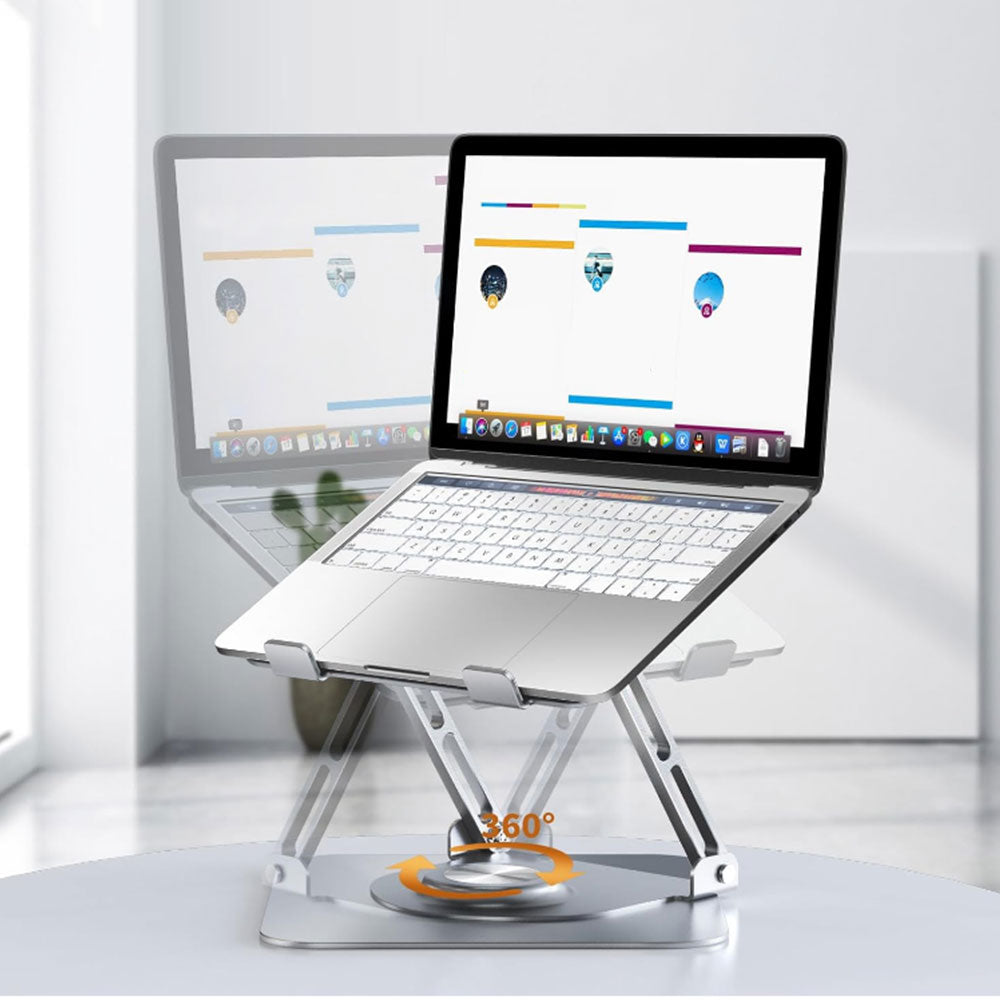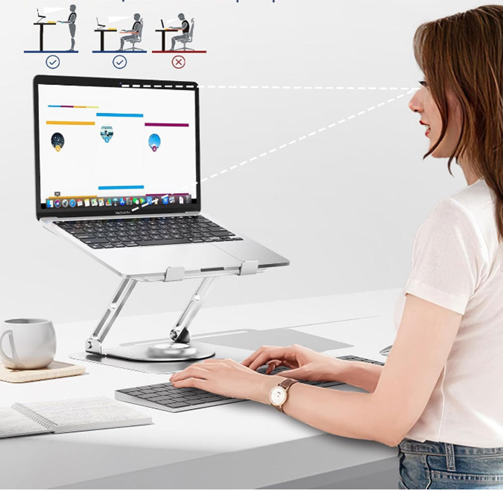 Adjustable Laptop Desktop Stand with 360-Degree Rotating Base Ergonomic Laptop Riser for 10-17in Laptops White