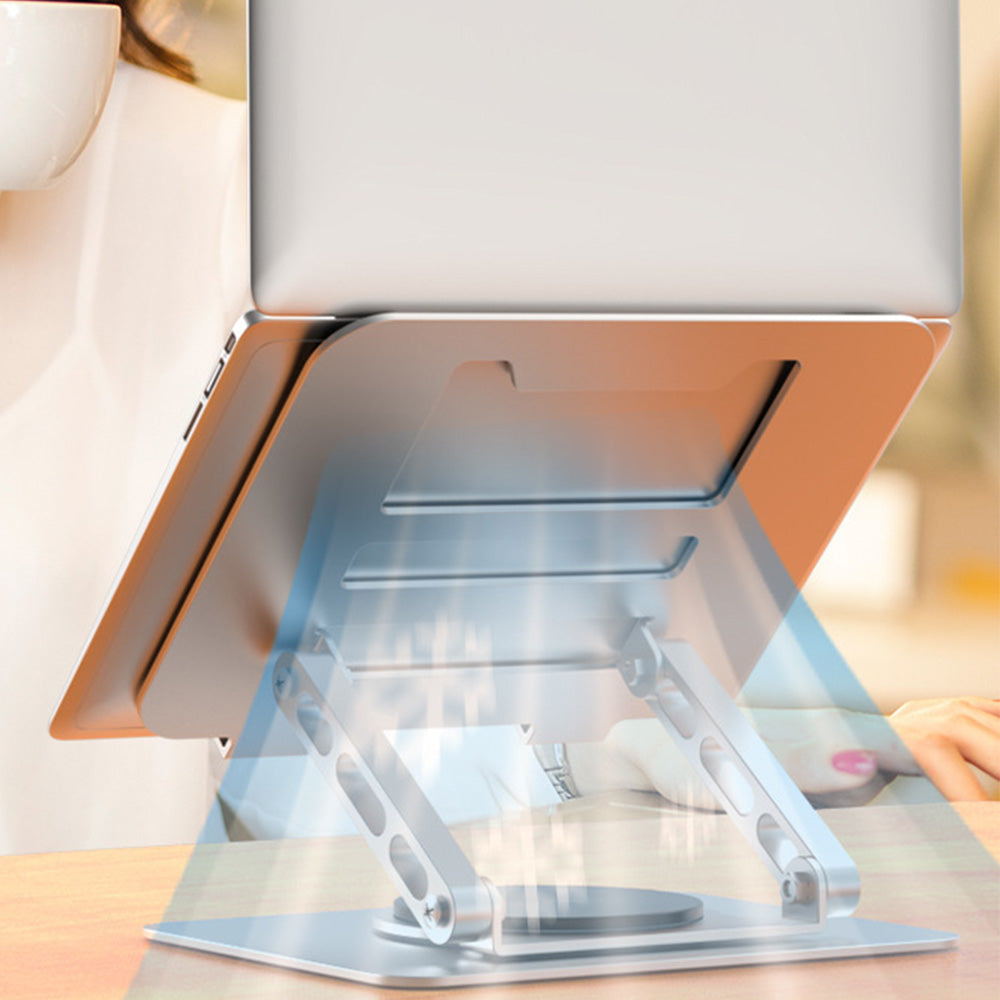 This adjustable laptop stand offers 360-degree rotation and customizable height and angle, providing ergonomic comfort while improving airflow and cooling for your laptop.