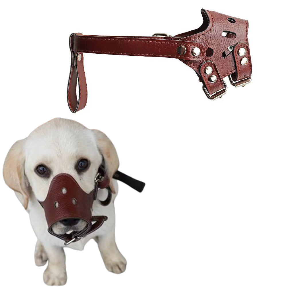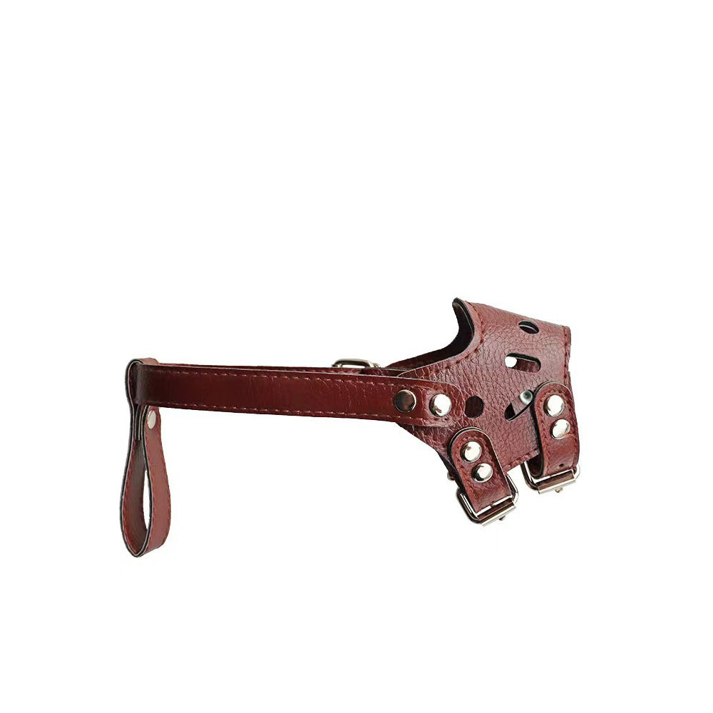 Adjustable PU Leather Dog Muzzle Pet Breathable Anti Bite Bark Chew Muzzles Brown